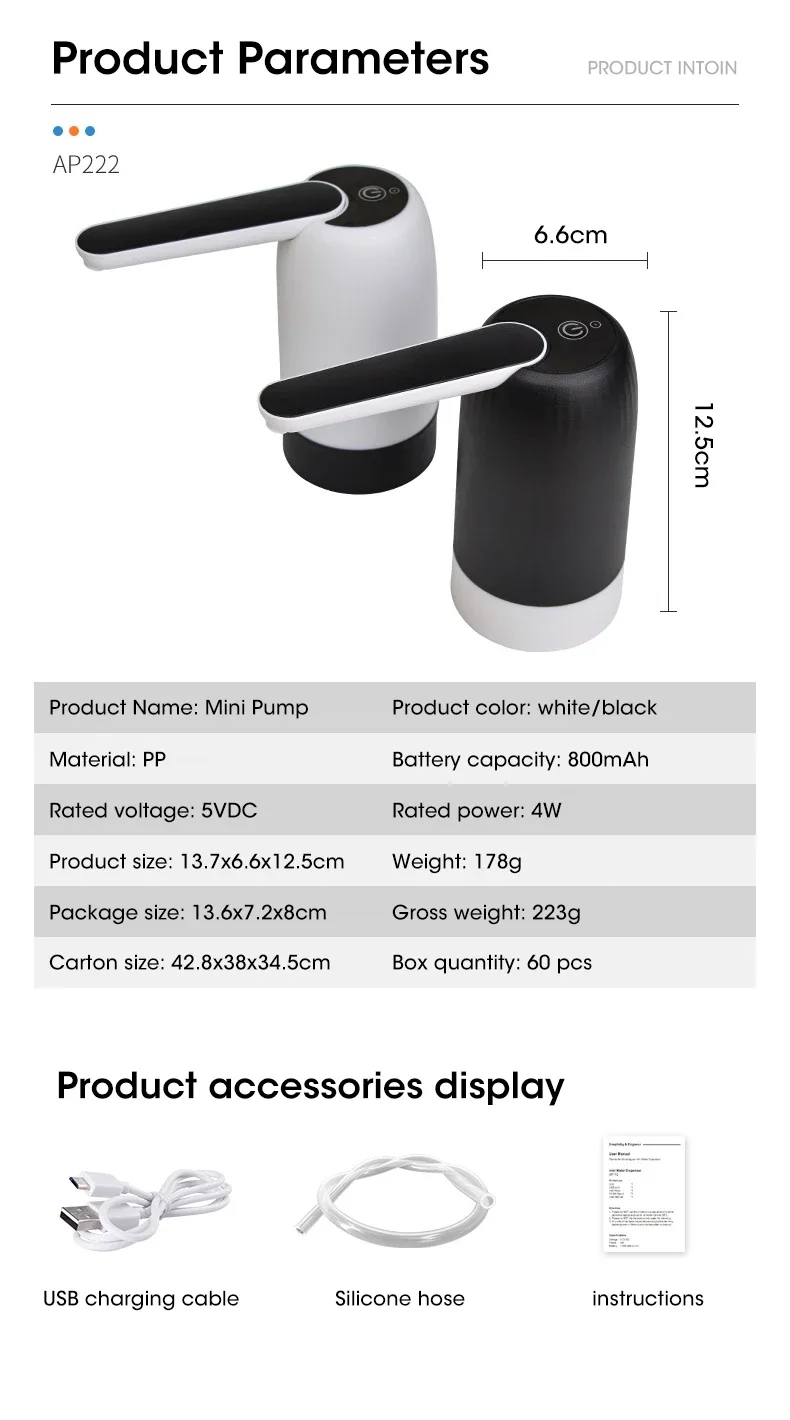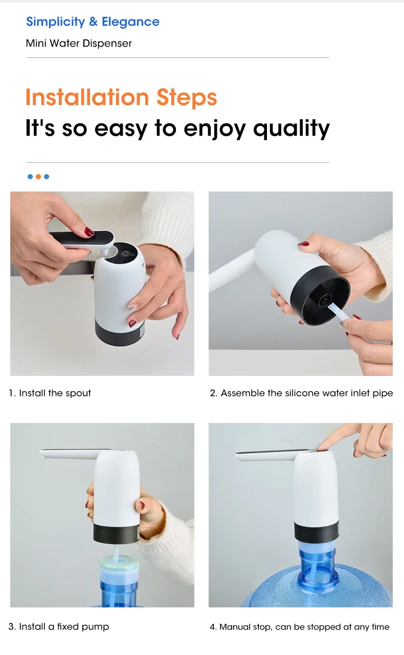 물병 펌프 워터 디스펜서 USB 충전 자동 물병 펌프 워터 펌프 워터 디스펜서의 원 버튼 스위치