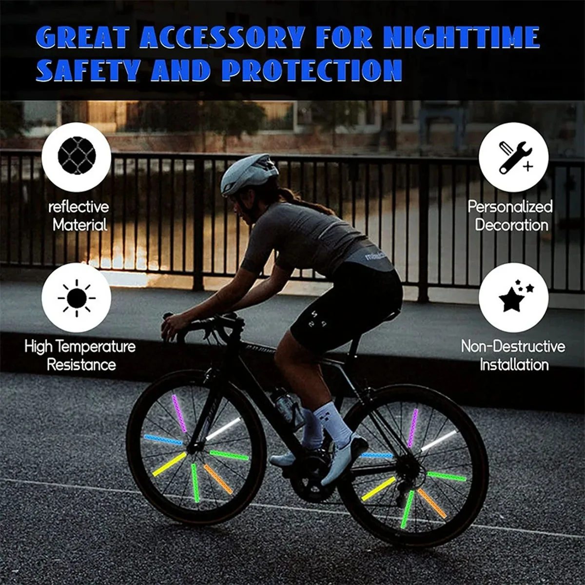 12Pcs 반사 마운트 클립 튜브 경고 스트립 자전거 바퀴 스포크 반사판 스트라이프 스틸 와이어 램프 MTB 자전거 반사판 라이트