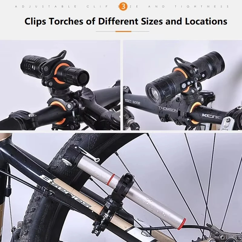 장착 링과 클램프의 부드러운 패드는 우수한 미끄럼 방지 효과를 방지하고 클램프가 핸들바나 손전등 표면을 긁기 쉽지 않게 만듭니다.