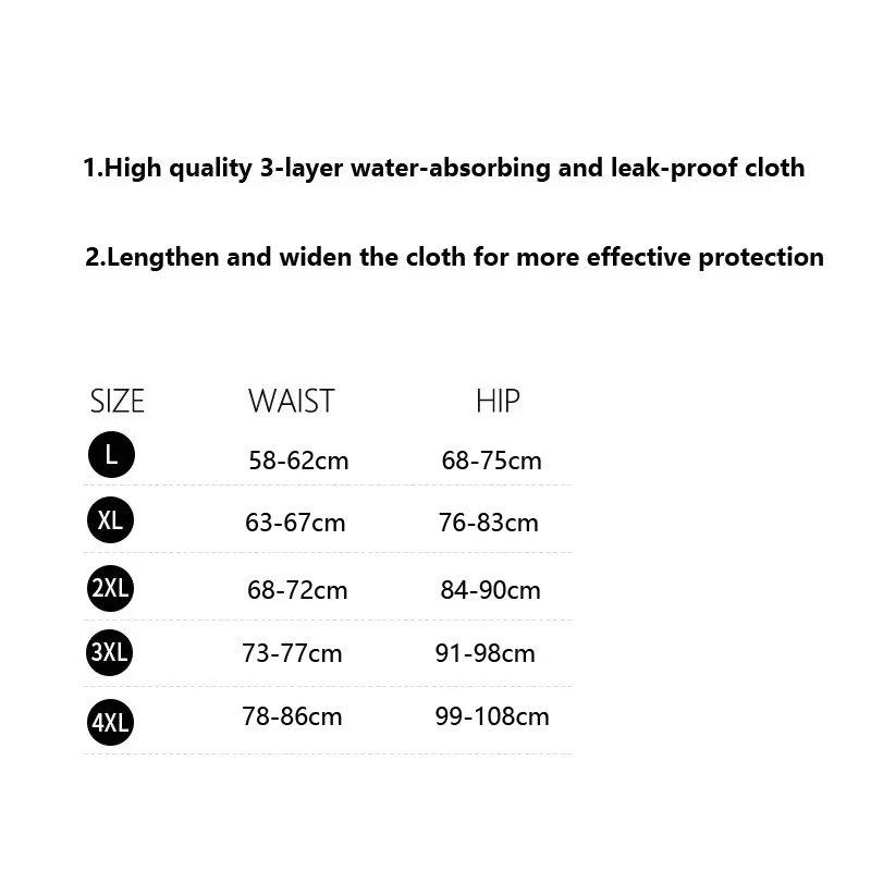 1.High quality 3-layer water-absorbing and leak-proof cloth;