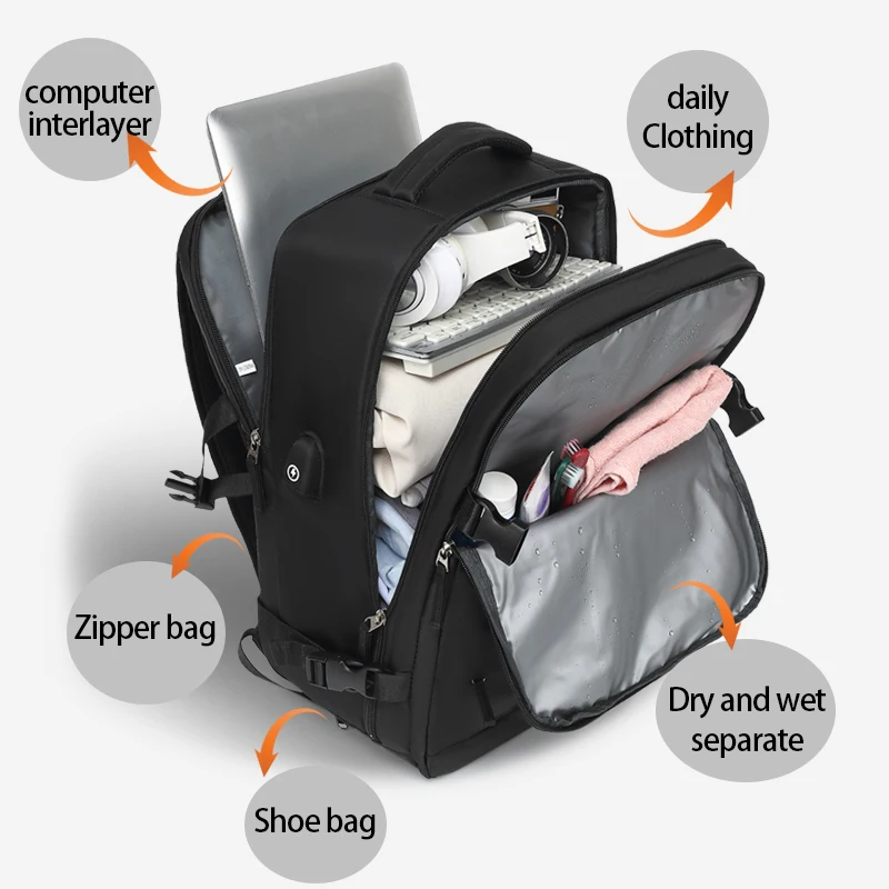 백팩은 넓고 많은 주머니가 있습니다. 비행기 여행에 딱 필요한 것 같아요. 꽤 내구성이 좋은 것 같아요.
