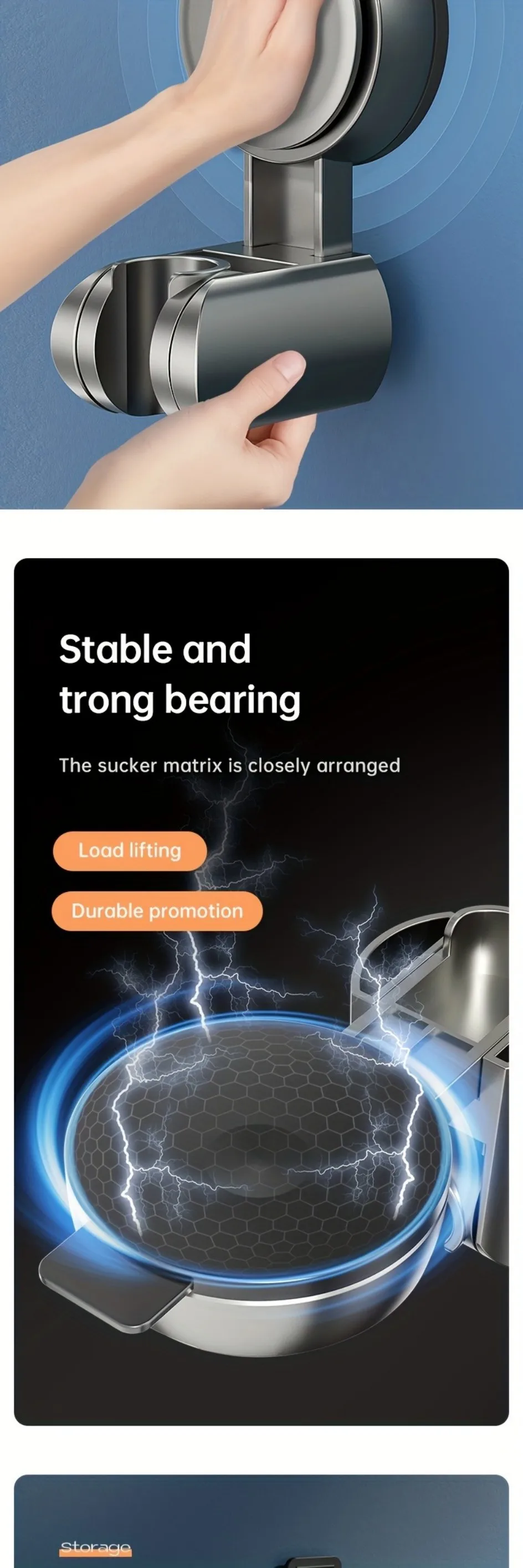 회전식 흡입 컵: 흡입 컵은 샤워 홀더가 매끄러운 표면에 부착되도록 보장합니다.360도 회전하는 디자인으로 홀더의 위치를 ​​다양한 각도에서 필요에 맞게 변경할 수 있습니다.