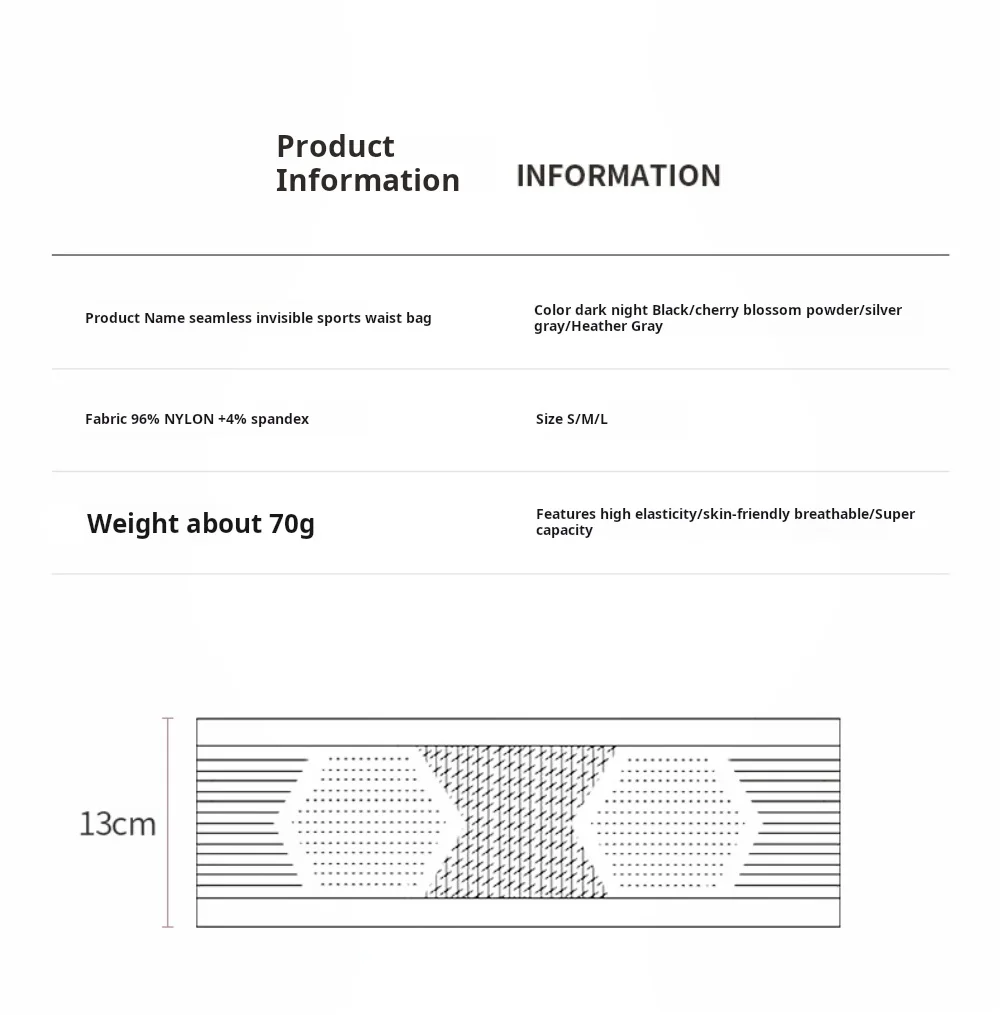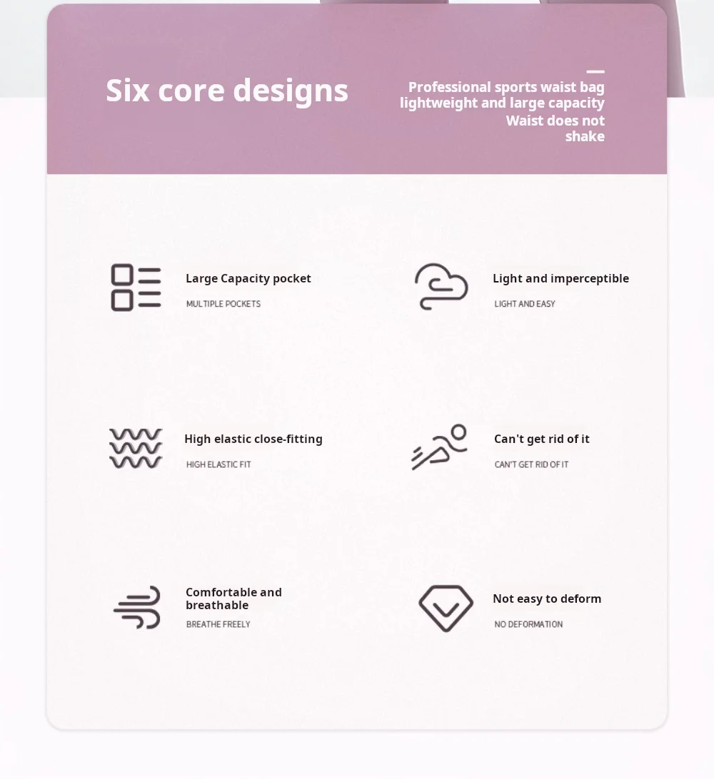 • 캐주얼 스타일:이 허리 팩의 캐주얼한 스타일은 여러분이 체육관으로 향하든 한가로이 산책을 하러 나가든 어떤 옷에도 잘 어울리게 합니다.