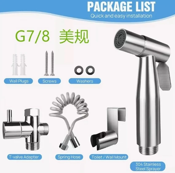 최고급 변기 스프레이 세트 고무 개스킷까지 모든 것이 제공됩니다. 설치가 쉽습니다. 매끄러운 너트 대신 육각 너트로 변경하는 것이 좋겠습니다.