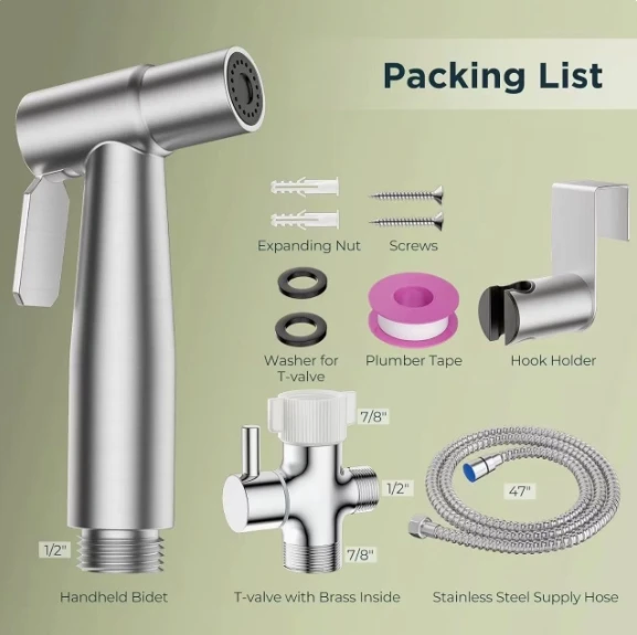 이 비데 스프레이 세트 정말 마음에 들어요! 설치는 5분밖에 걸리지 않았습니다. 후크 홀더는 대부분의 화장실에 완벽하게 맞습니다. 개인 위생, 화장실 청소, 심지어 애완동물 세척에도 좋습니다.