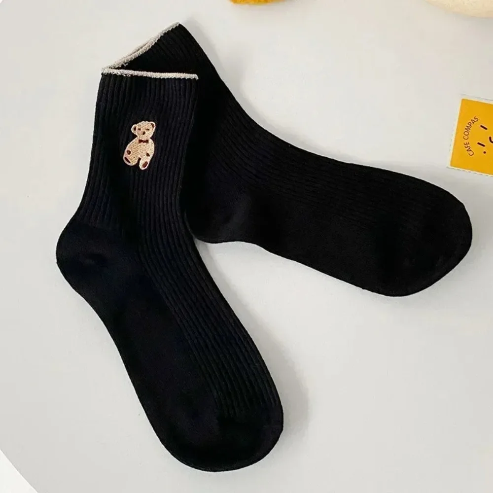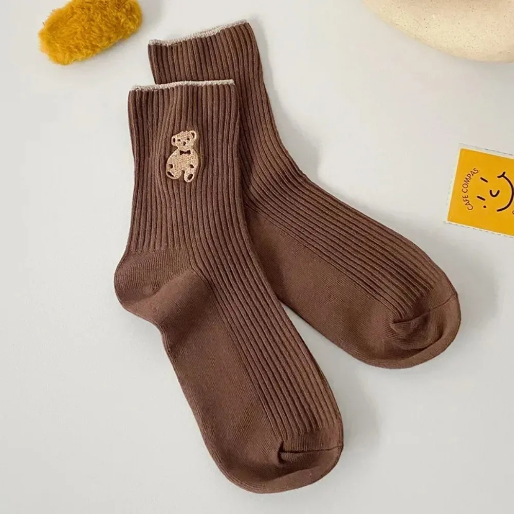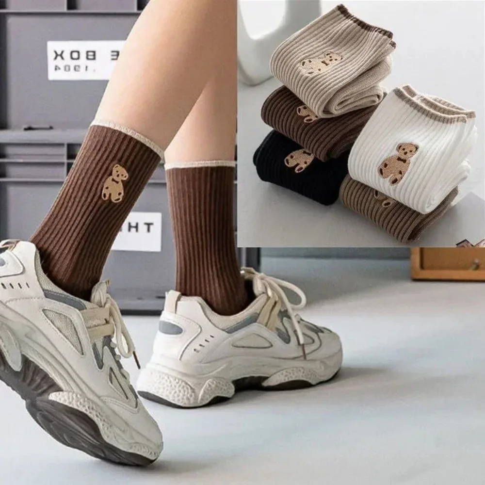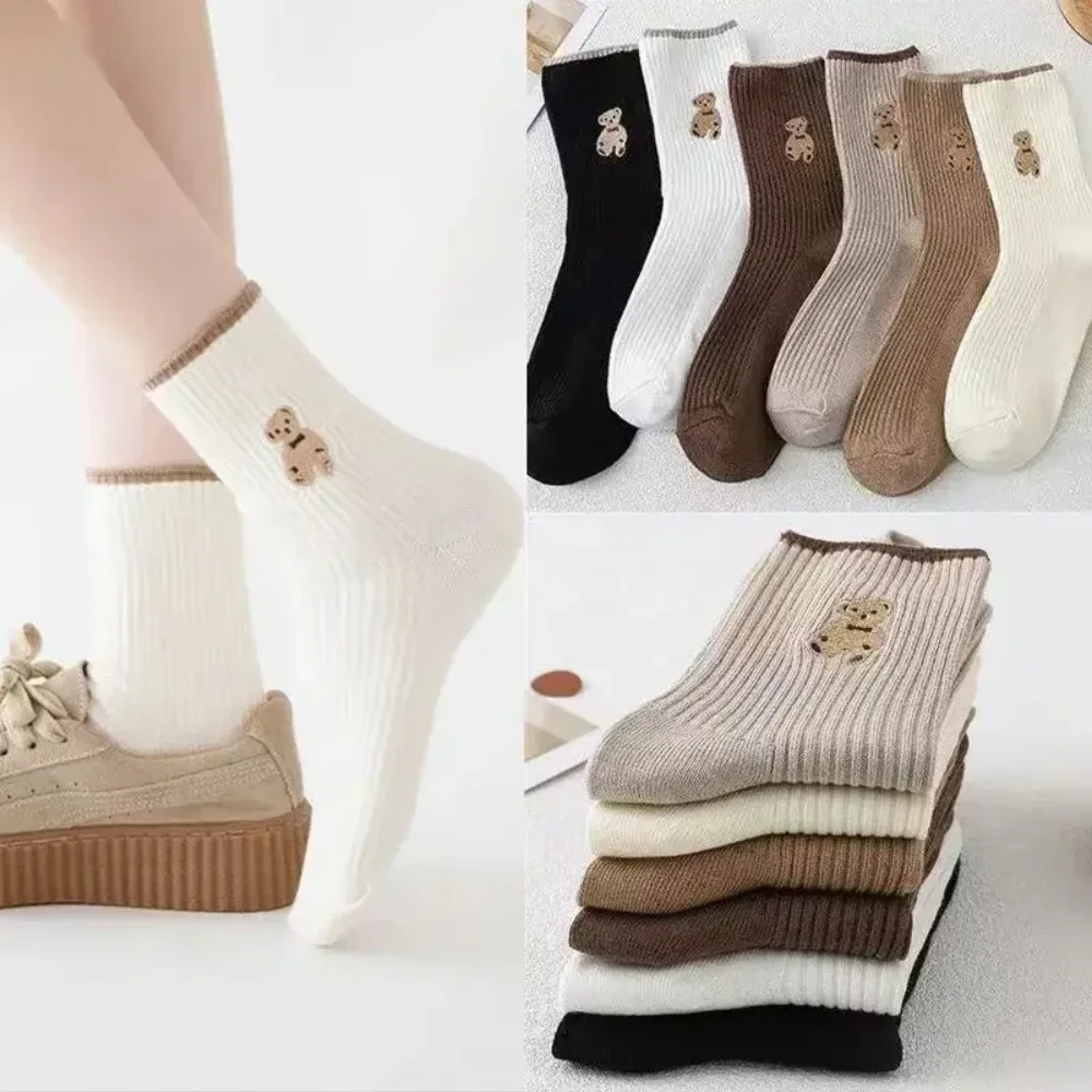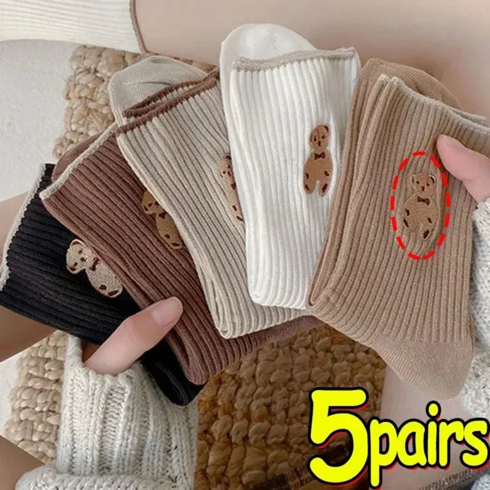 5 쌍 만화 곰 양말 부드러운 면 양말 가을 커피 스타킹 카와이 여성 양말 한국 캐주얼 스타킹 여성 양말