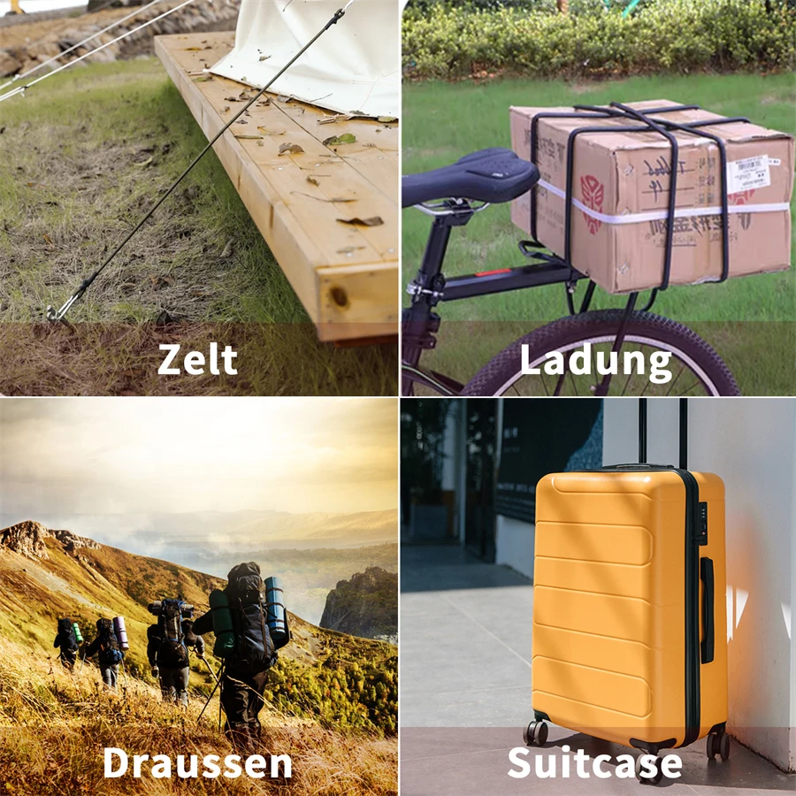 4. 다용도: 번지 코드는 텐트 고정, 캐노피 고정, 물건 묶기, 트럭 선반 물품 고정, 캠핑 용품 보관 등 다양한 용도로 사용할 수 있습니다.