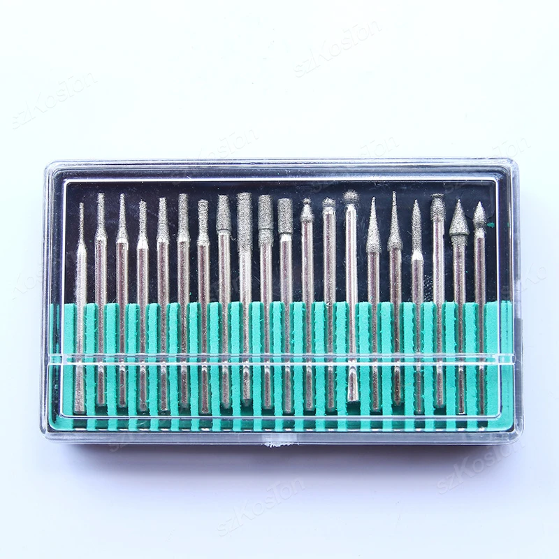 30pcs Shank Diamond Burs Set With Box For Dremel Electric Grinder Power Accessories Abrasive Drill Bit Rotary Tool Set 2.35/3mm