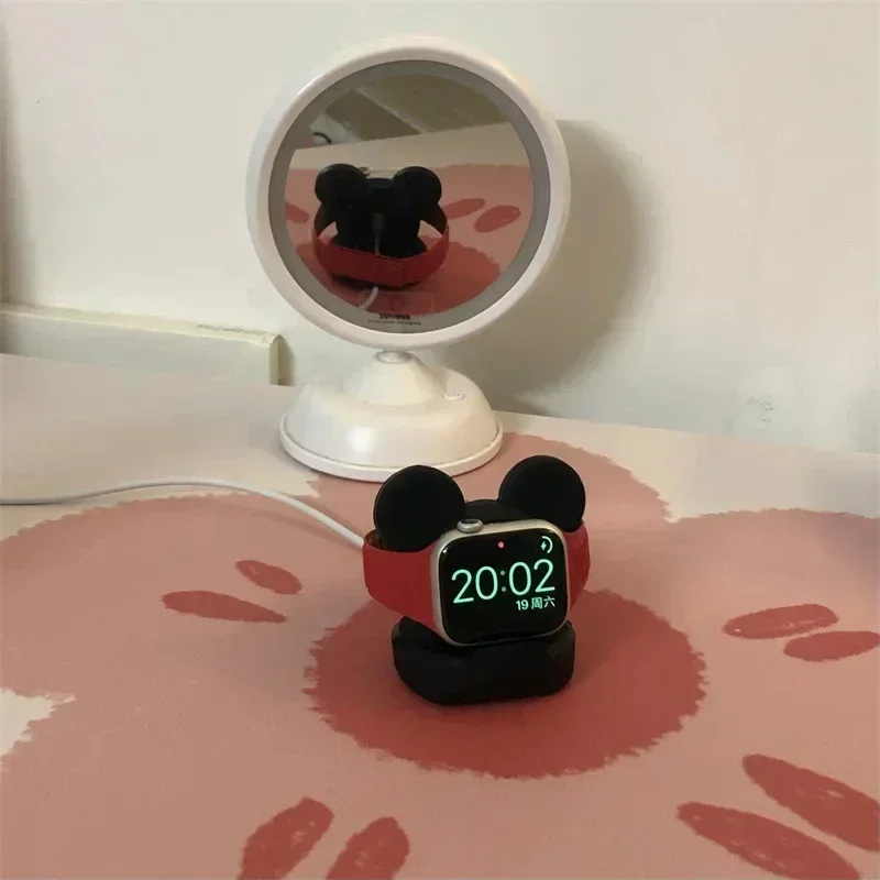 Mickey Mouse Charger Stand Minnie Desktop 거치대 용 Apple Watch 9 8 7 6 5 4 iWatch 3 2 1 SE Cartoon Silicone Charging Base