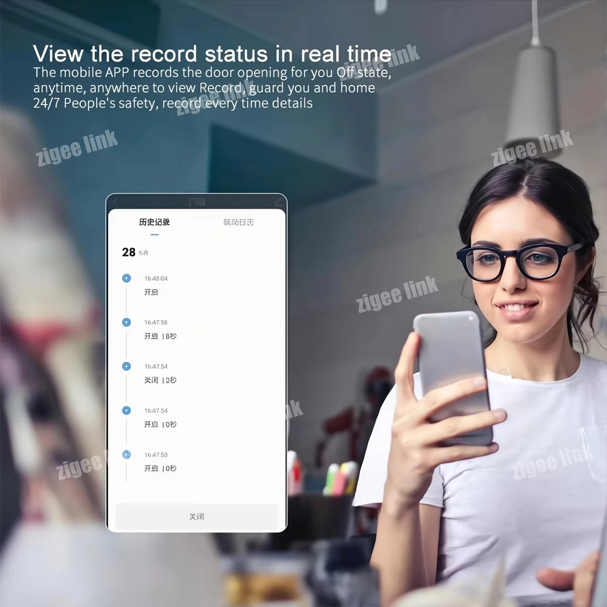 4.알람 녹화: 앱에서 개폐 기록 및 배터리 잔량 확인을 지원합니다.중요한 순간을 놓치거나 배터리가 부족할까봐 걱정하지 마세요.