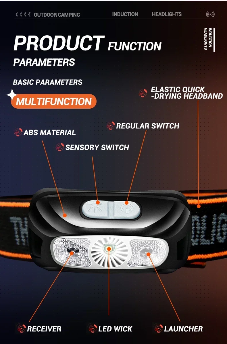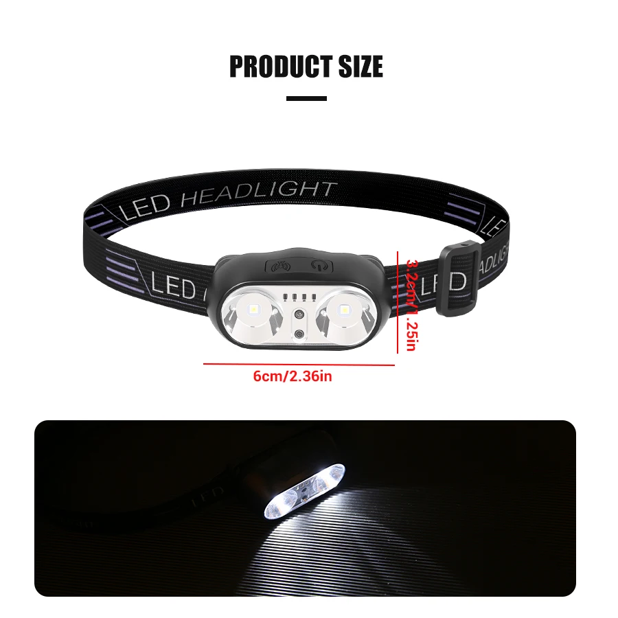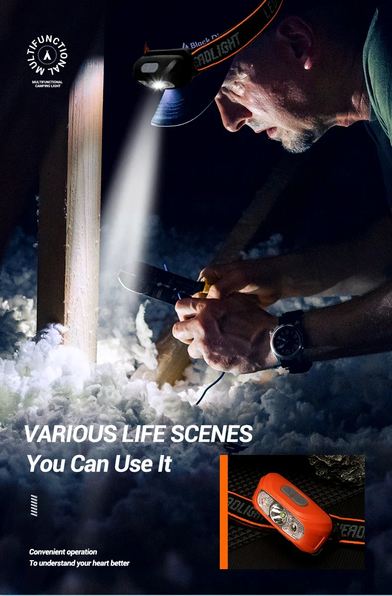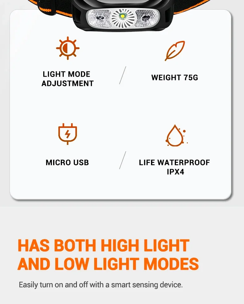 매우 실용적인 작고 가벼운 헤드램프, 매우 빠르게 충전되며 모션 감지 기능과 함께 사용할 때 몇 시간 동안 충전을 잘 유지합니다.
