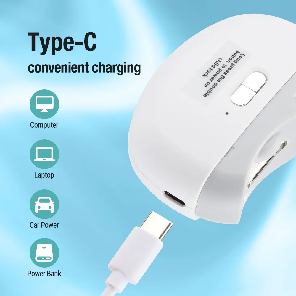 4. 컴팩트한 전기 손톱깎이는 보관 및 휴대가 간편하여 이동 중, 여행 중 또는 집에서 언제 어디서나 손톱을 다듬을 수 있습니다.