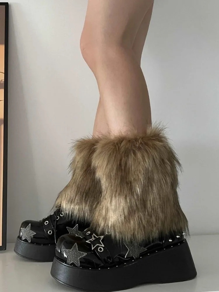 3 Colors 15cm Thicken Faux Furs Plush Leg Warmers Winter Women's Warm Footless Boot Covers Y2K JK Uniform Clothes Accessories