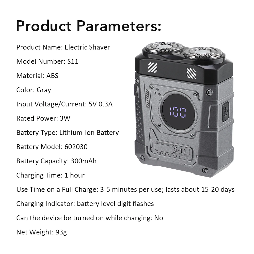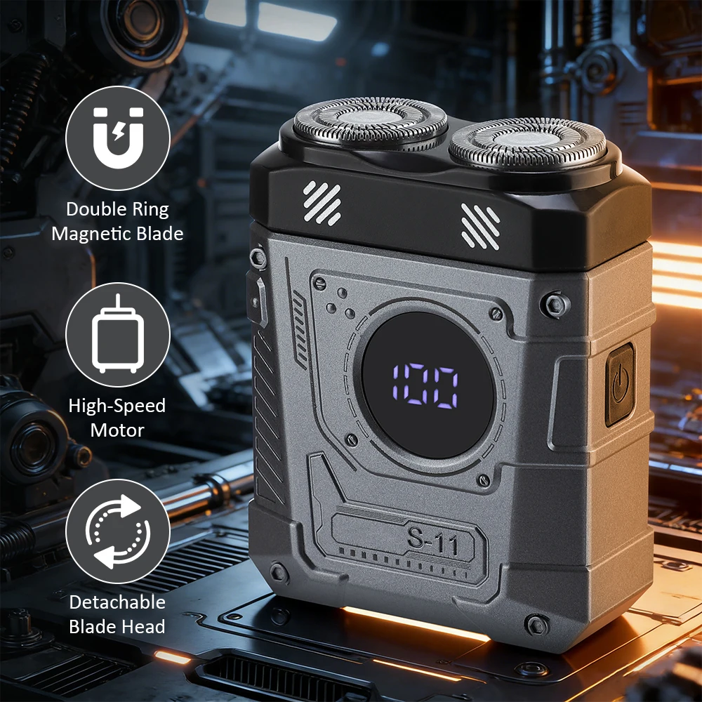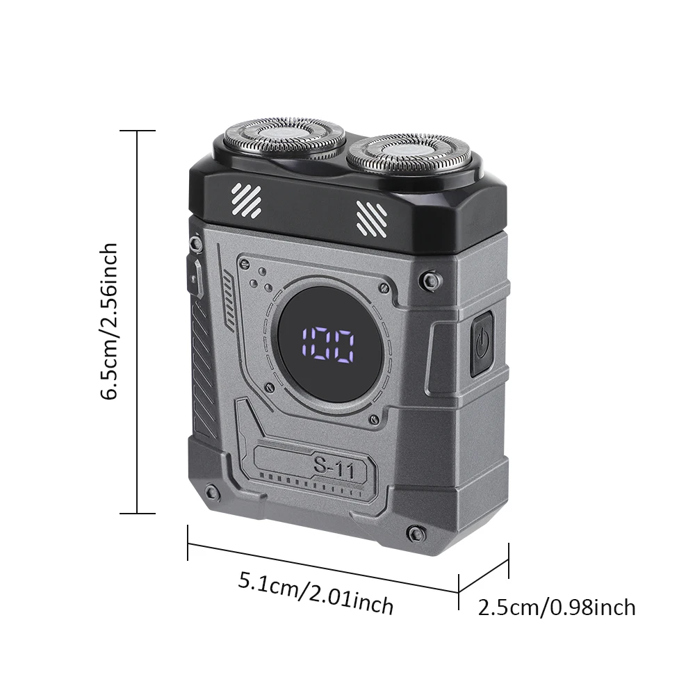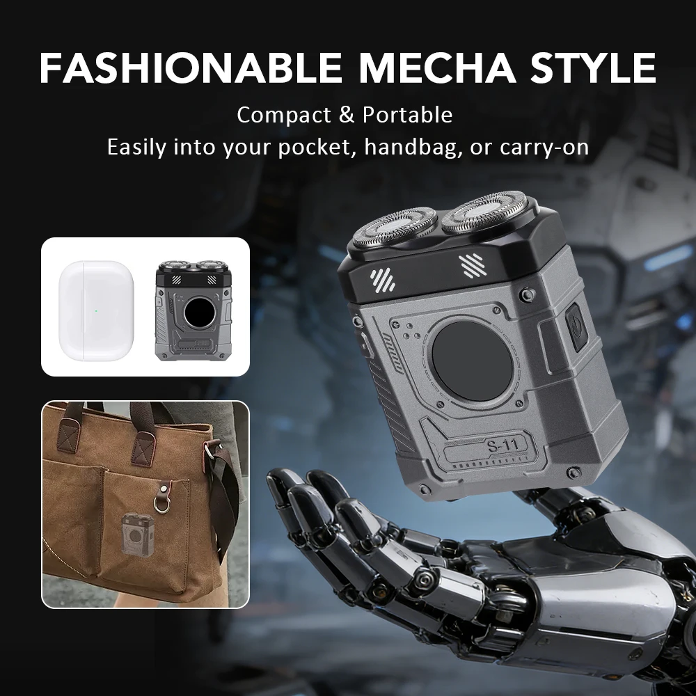 5. 스타일리시한 미니 메카 디자인을 특징으로 하는 이 미니 수염 면도기는 가볍고 휴대하기 편리합니다. 내장된 300mAh 배터리는 집에서나 이동 중에도 일상적인 면도를 위한 충분한 전력을 제공합니다.