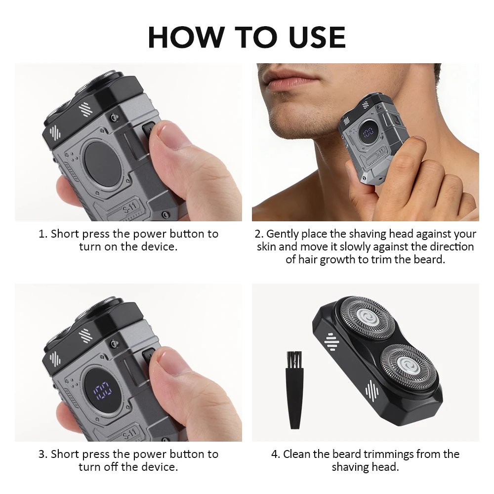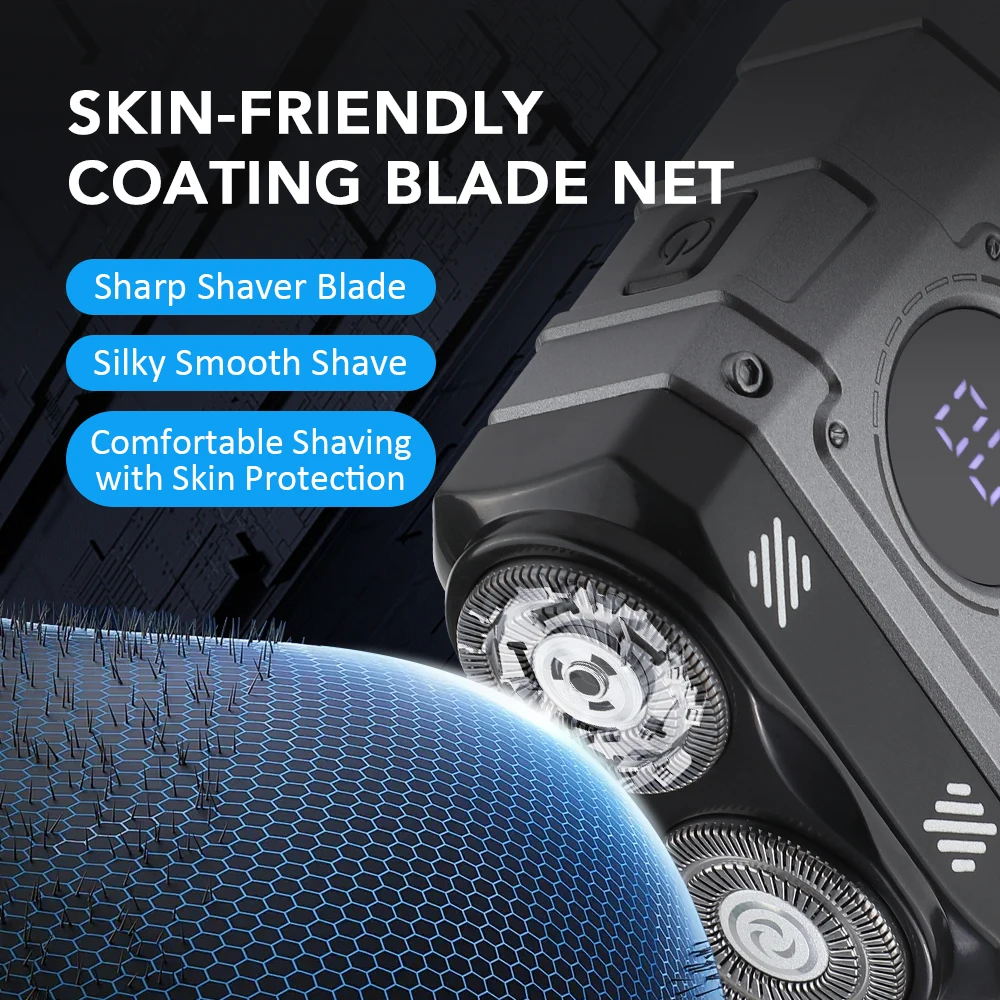 1. 고속 및 강력한 성능: 이 전기 스마트 면도기는 9000RPM의 고토크 모터를 탑재하여 부드럽고 끊김 없는 면도를 제공합니다. 조용한 작동으로 매번 편안한 그루밍 경험을 보장합니다.