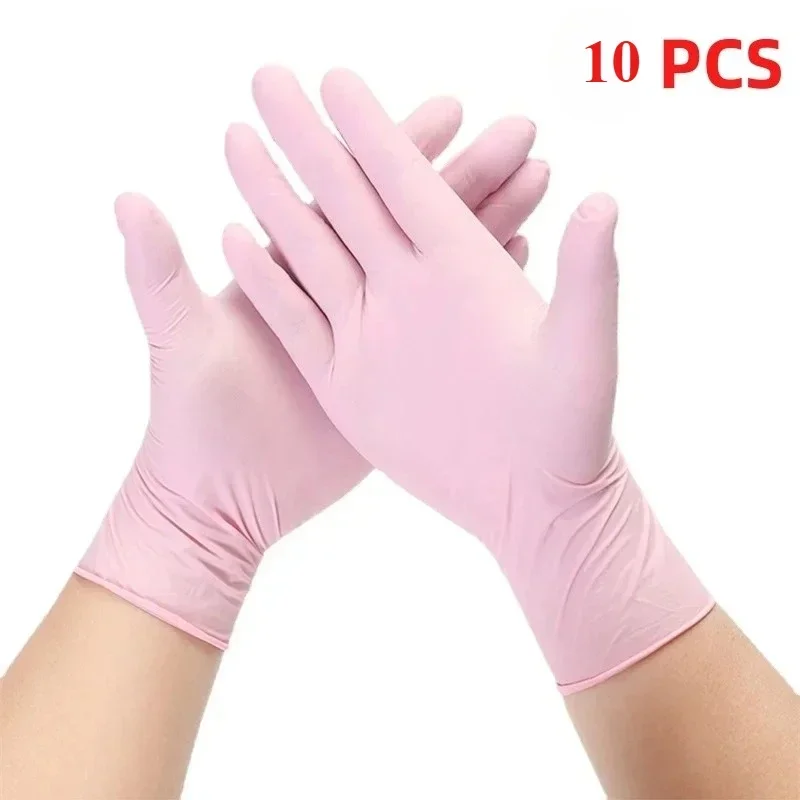 10/50/100개 핑크 니트릴 장갑 일회용 라텍스 장갑 파우더 프리 가정용 청소 미용실 작업 주방 장갑