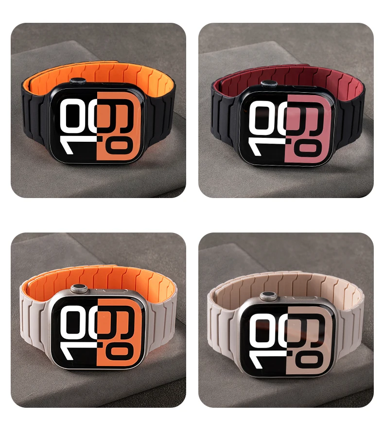 편안하고 통기성: 이 자기 실리콘 링크 시계 스트랩은 고품질 실리콘 소재로 부드럽고 내구성이 뛰어나며 가볍습니다.독특한 스포츠 공기 구멍 디자인으로 통기성과 편안함을 더해줍니다.