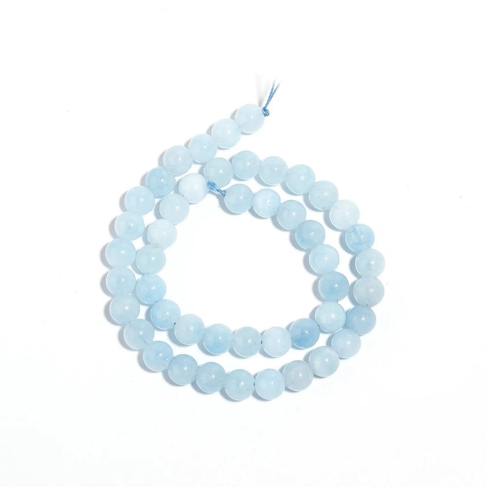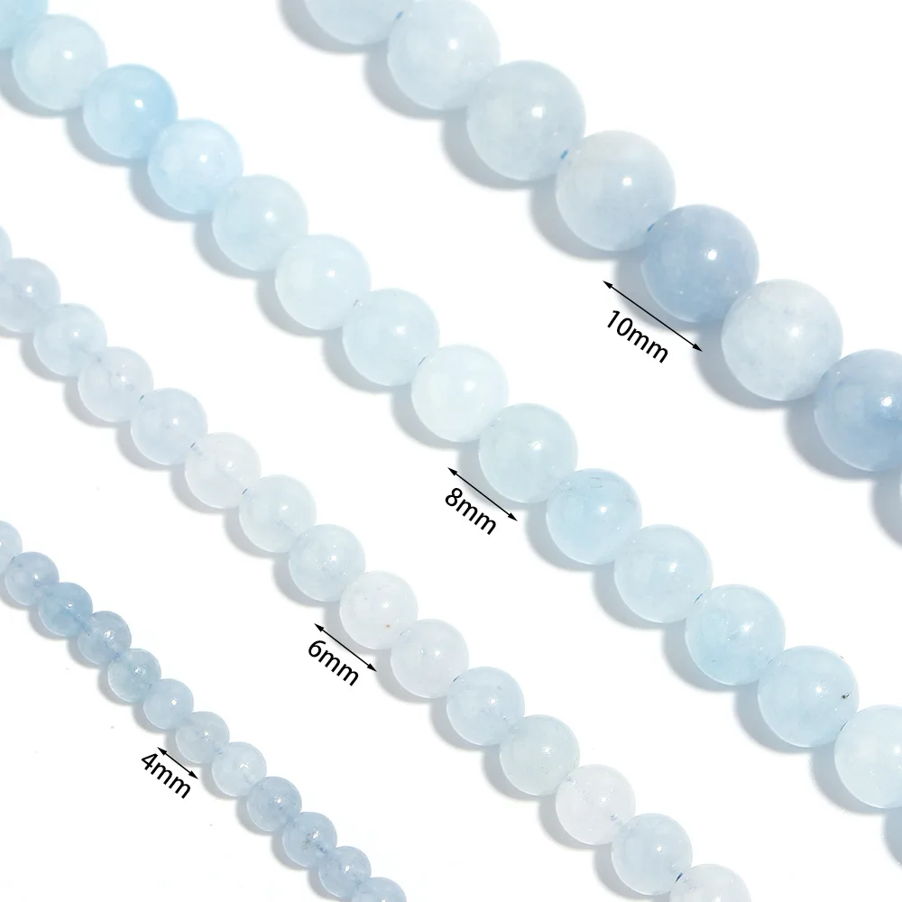 1 가닥 4/6/8mm 천연 아쿠아 마린 스톤 비즈 보석에 대 한 블루 라운드 보석 구슬 DIY 팔찌 목걸이 액세서리 만들기 도매