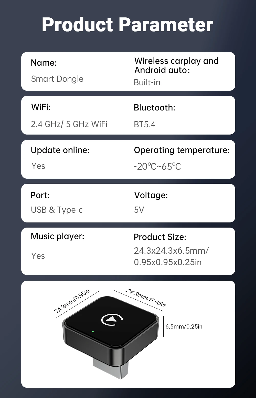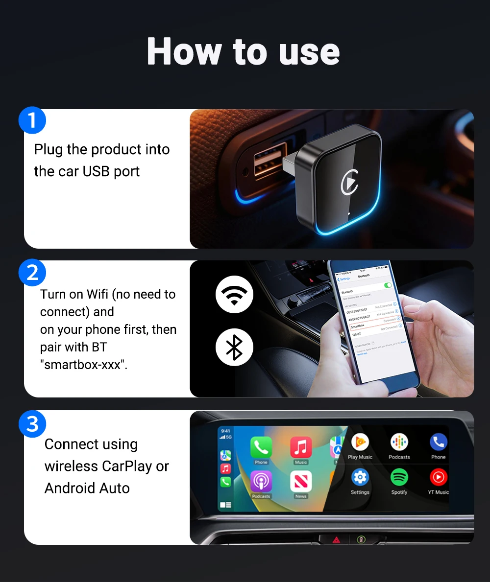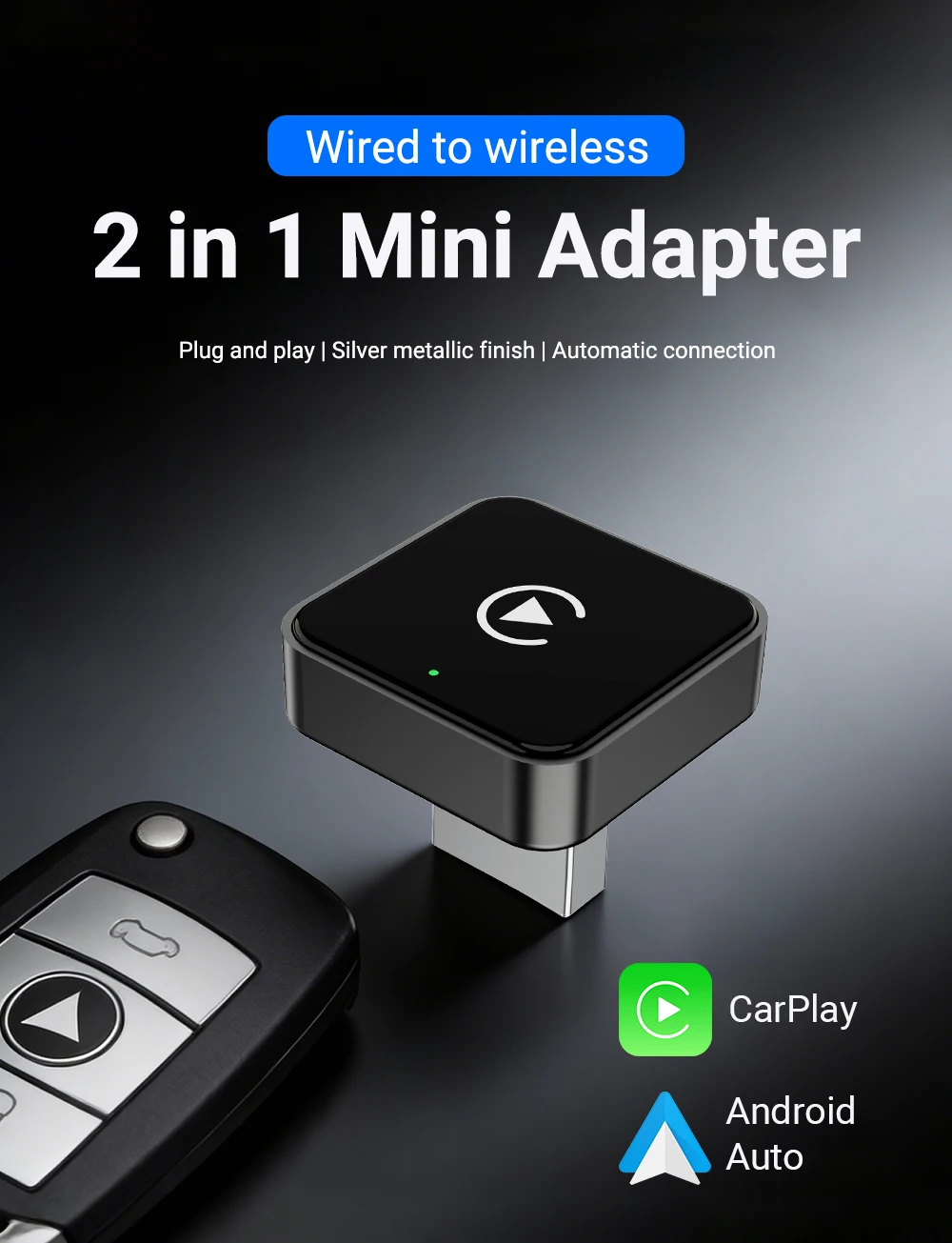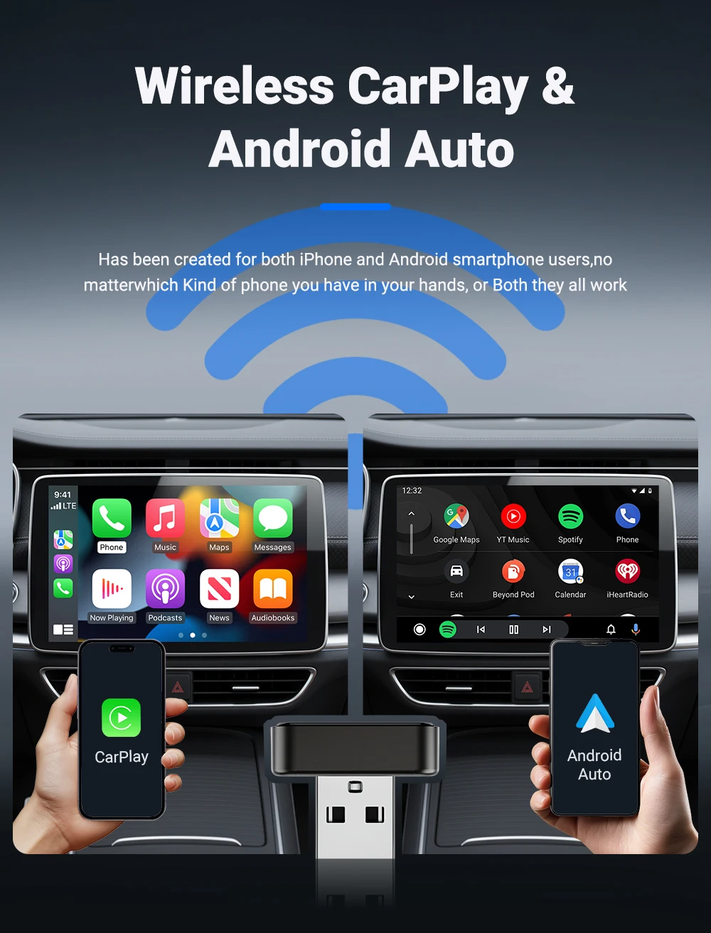 1. 유선 CarPlay를 무선으로 변환하는 어댑터, 이제 선과 작별하세요. USB 플러그 앤 플레이 설치, 안정적이고 빠른 연결, OEM 라디오를 제거할 필요 없음.