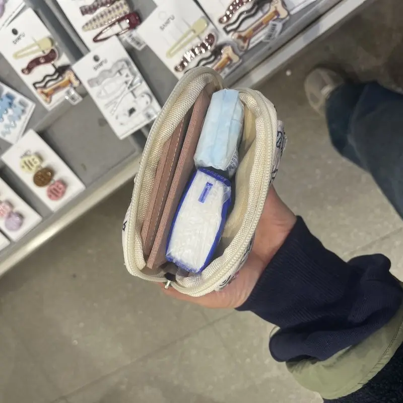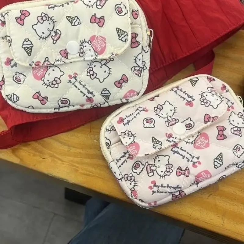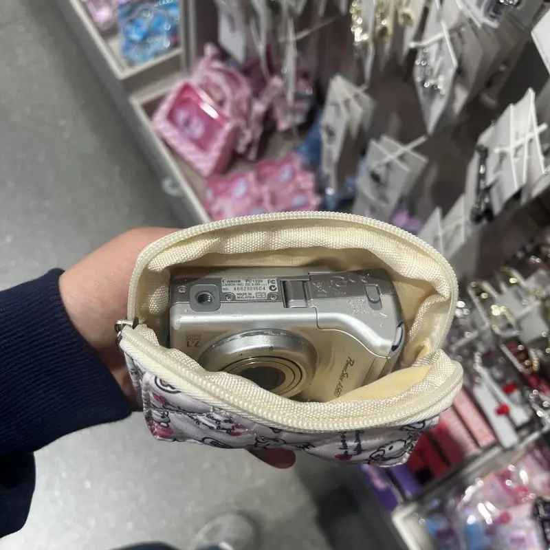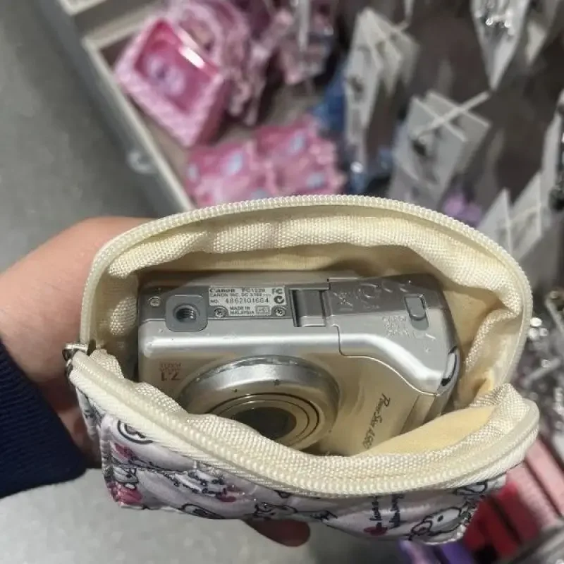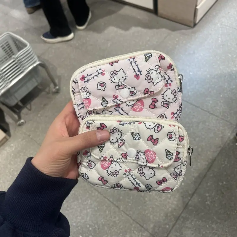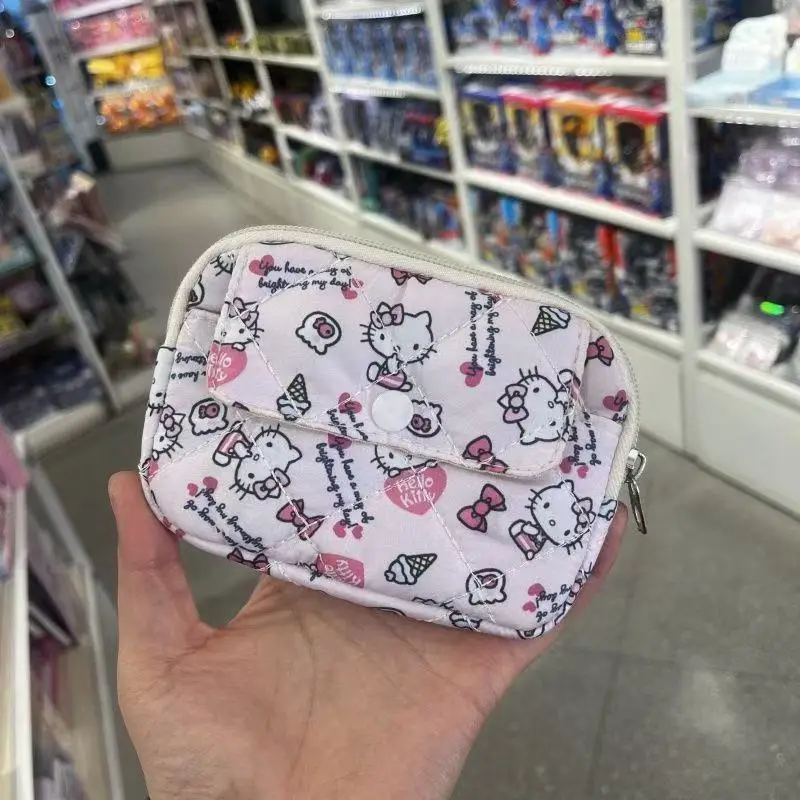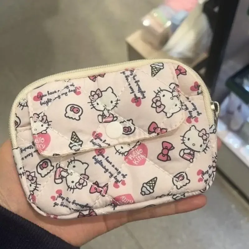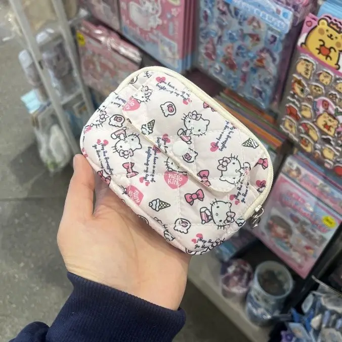 새로운 귀여운 산리오 부드러운 면 자수 리본 지퍼 여성용 메이크업 가방, 고양이 카드 가방, 이어폰 가방, 키 가방, CCD 보관 가방