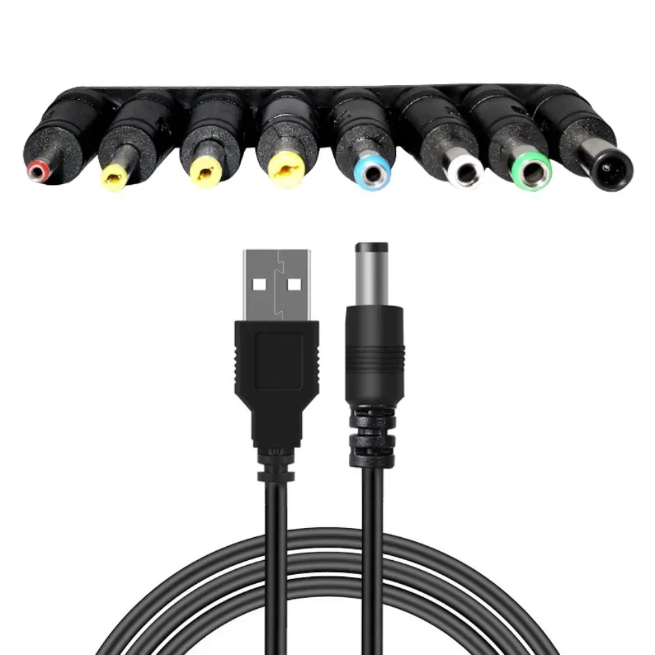 범용 전원 케이블 USB-DC 5.5*2.1mm 잭 5V 충전 코드(CCTV 카메라용 8개 선택 가능한 커넥터 팁 포함) TV 박스 허브 분배기 LED 조명