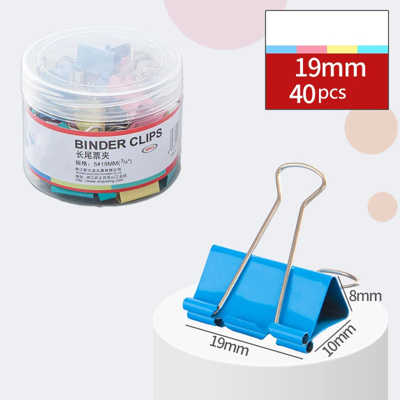사무용 문구용 19mm 다채로운 롱테일 클립 40개 |