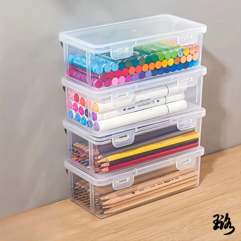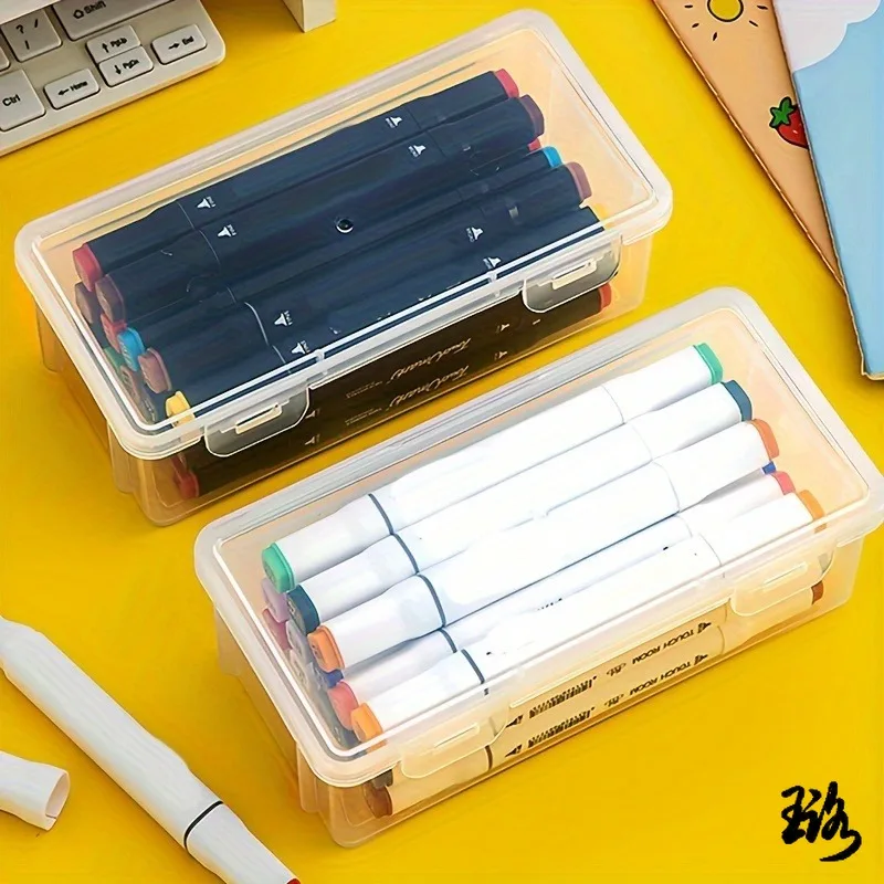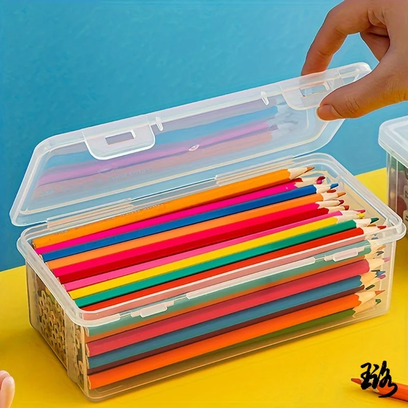 2pcs 대용량 투명 플라스틱 연필 상자, 오일 파스텔, 크레용용 휴대용 텐션 마운트 보관 주최자