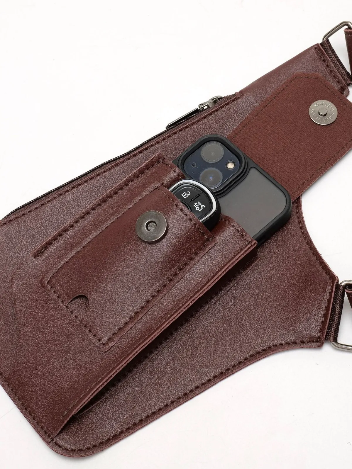 가방이 마음에 들어요. 아이폰 16 Pro가 딱 맞게 들어가네요! 열쇠도 잘 들어가고요. 다만, 같은 주머니에 '가짜' 지퍼가 하나 있는 건 좀 이상하네요... 지퍼가 두 개나 있는 건 좀 이상한데... 그 외에는 아주 좋습니다!