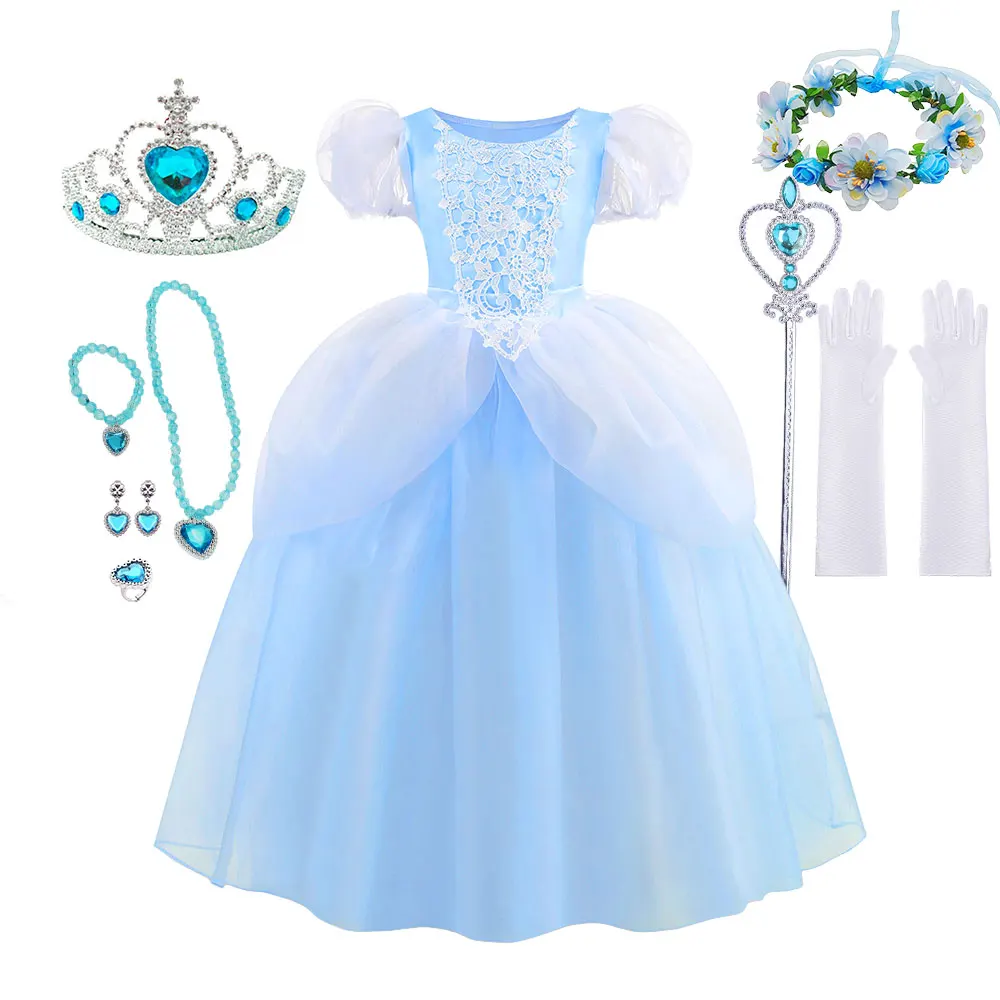 2026 클래식 신데렐라 코스튬 디럭스 레이스 드레스 생일 파티 역할놀이 공주 드레스 동화풍 그레이스 볼 가운 (어린이용)
