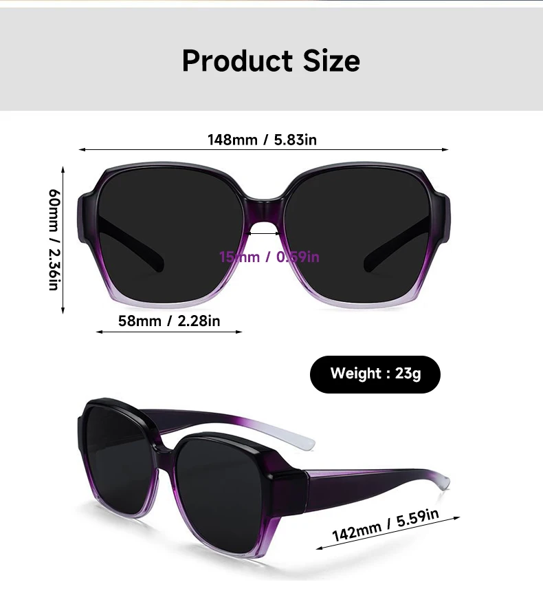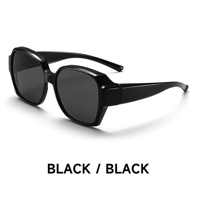 편광 선글라스, 근시 안경 착용 가능 남녀 공용 UV 차단 둥근 얼굴 보정 효과 운전용 선글라스