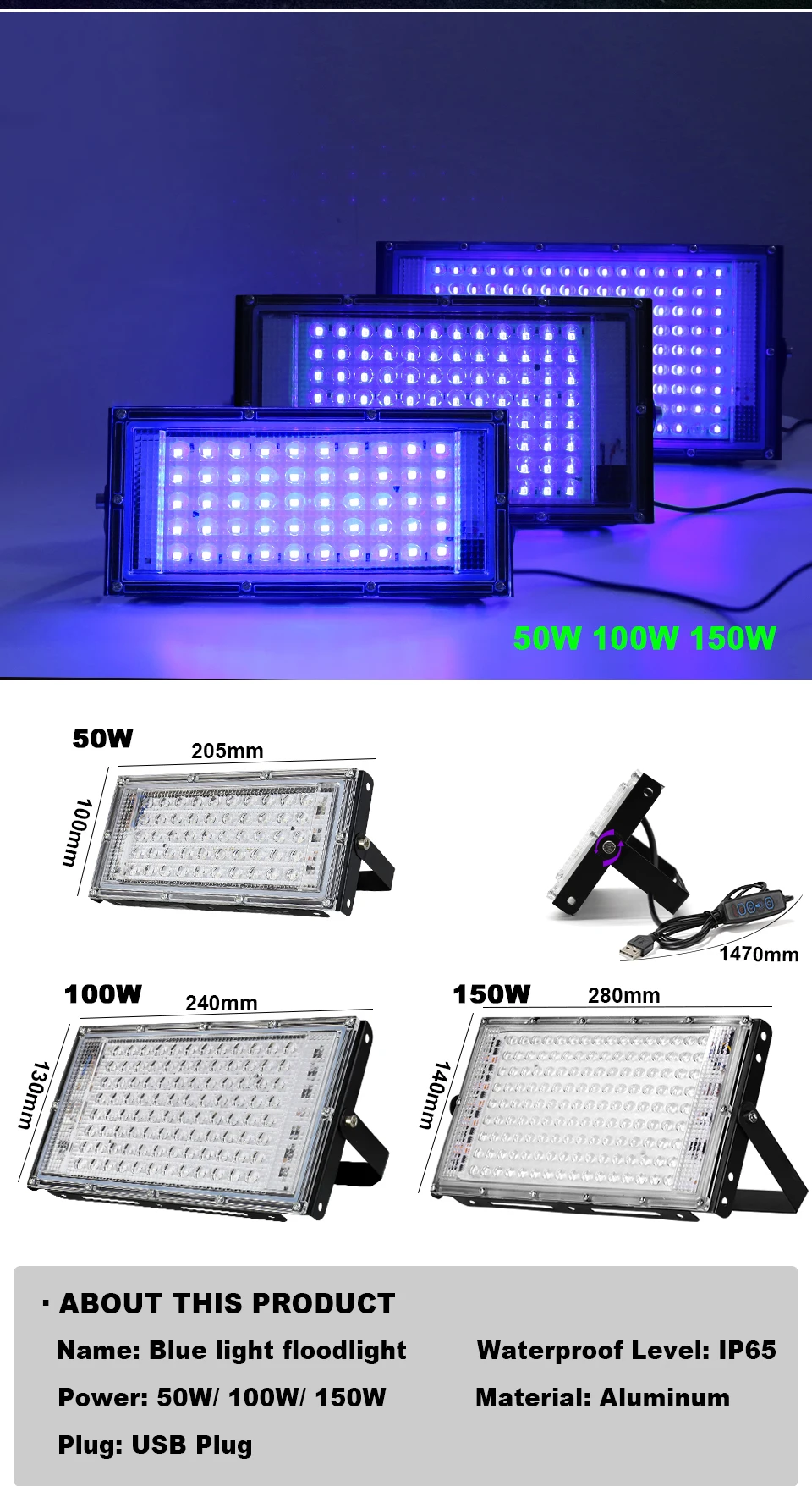 Led UV USB 투광 조명 50W 100W 150W USB LED 무대 Blacklight 방수 220V 자외선 무대 램프 디스코 파티 무대 백라이트