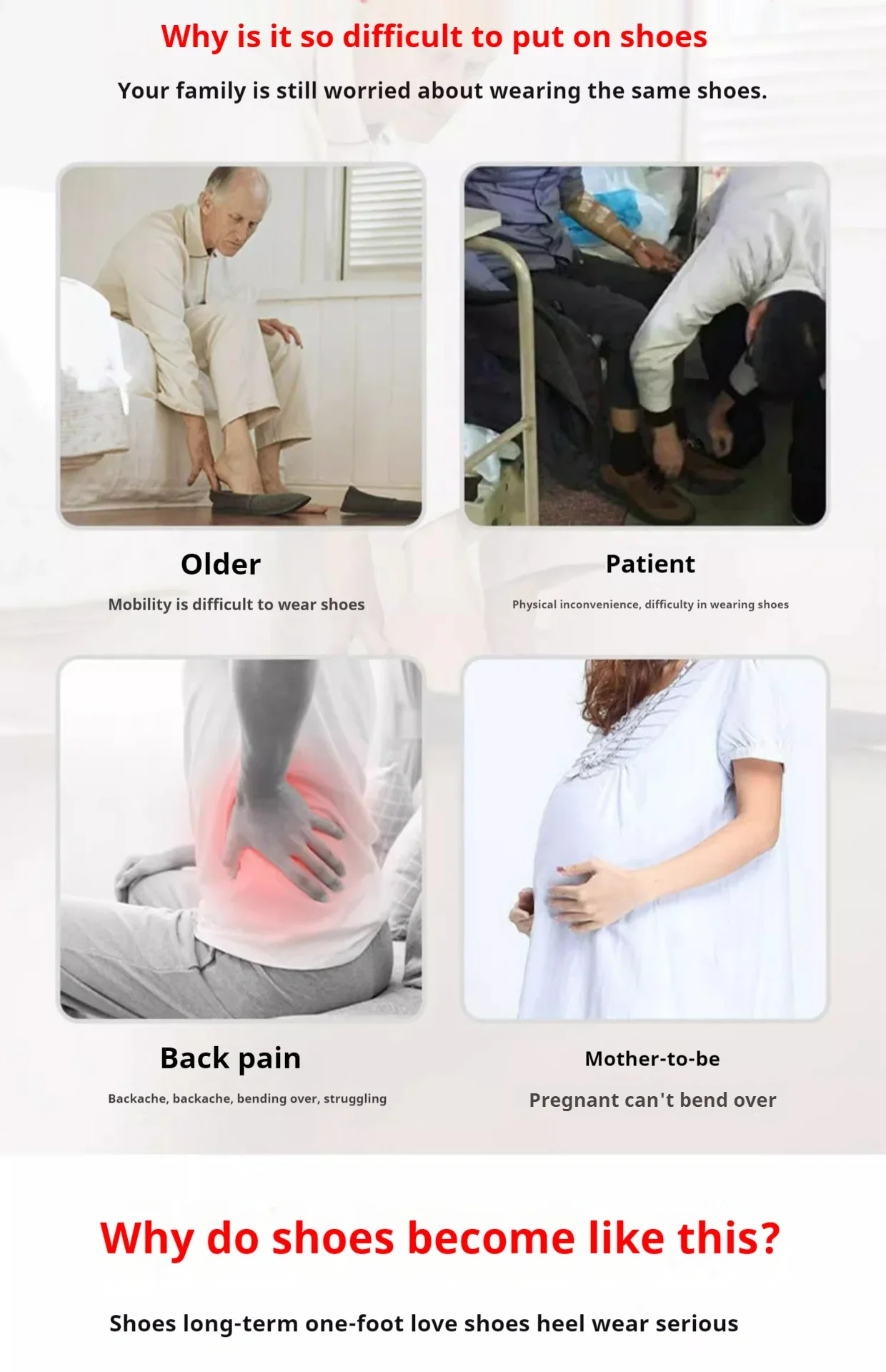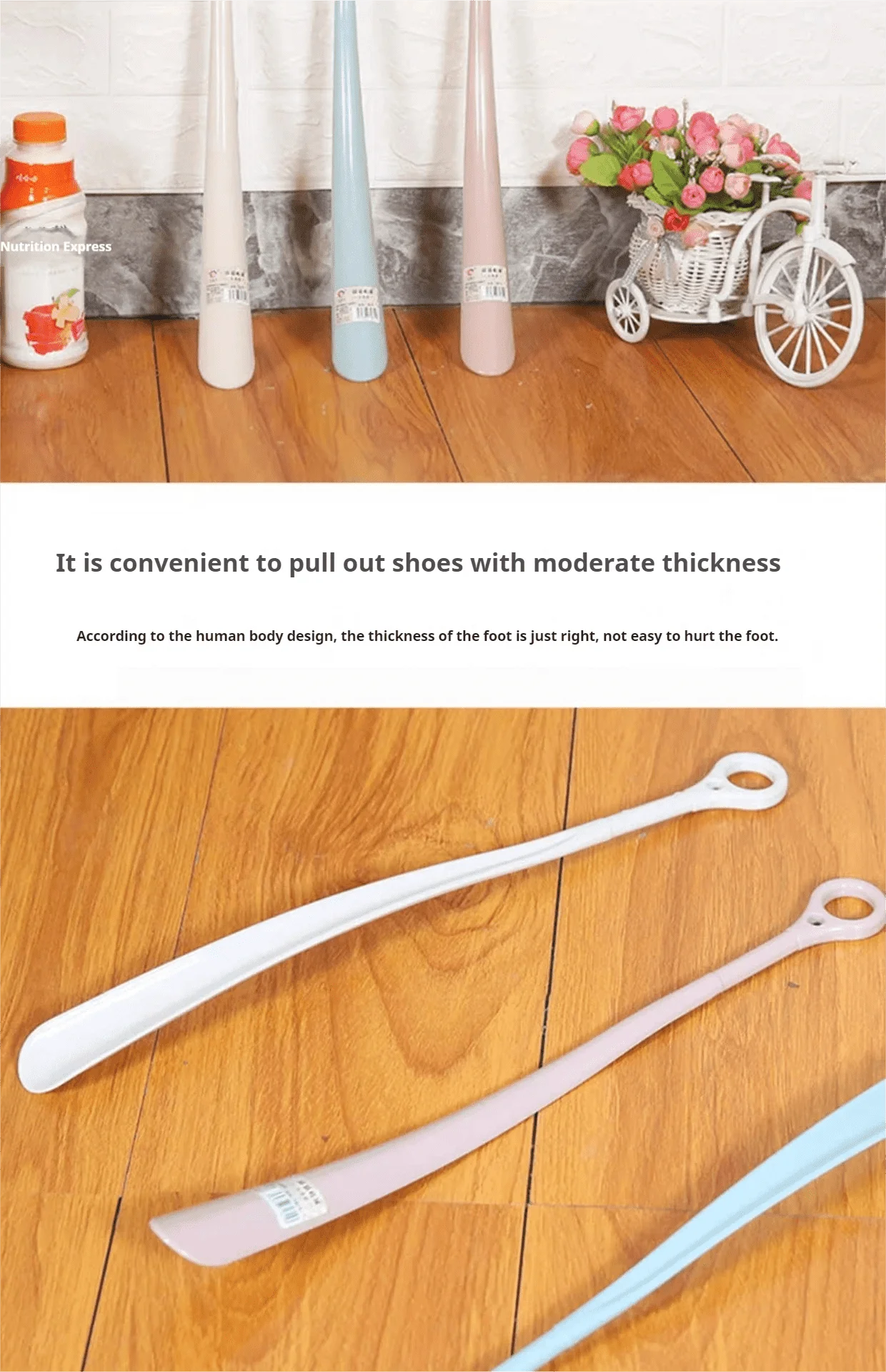 1.긴 손잡이 디자인: 특별히 확장된 손잡이를 사용하면 몸을 구부리지 않고도 신발을 쉽게 들어 올릴 수 있어 허리를 부상으로부터 보호할 수 있으며 특히 노인과 임산부에게 적합합니다.