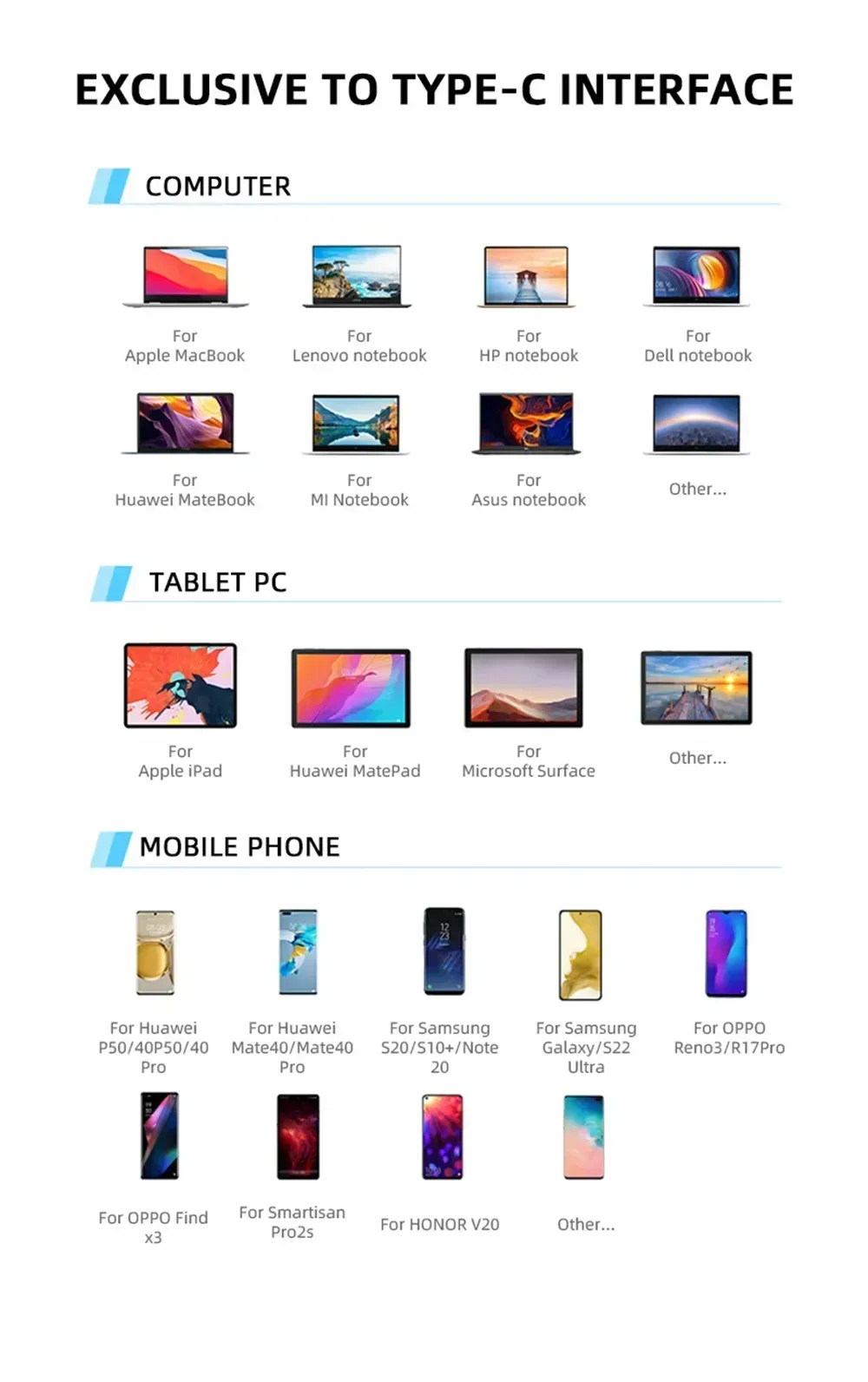 8-in-1 USB-C 허브 도킹 스테이션 노트북 지원 목록: