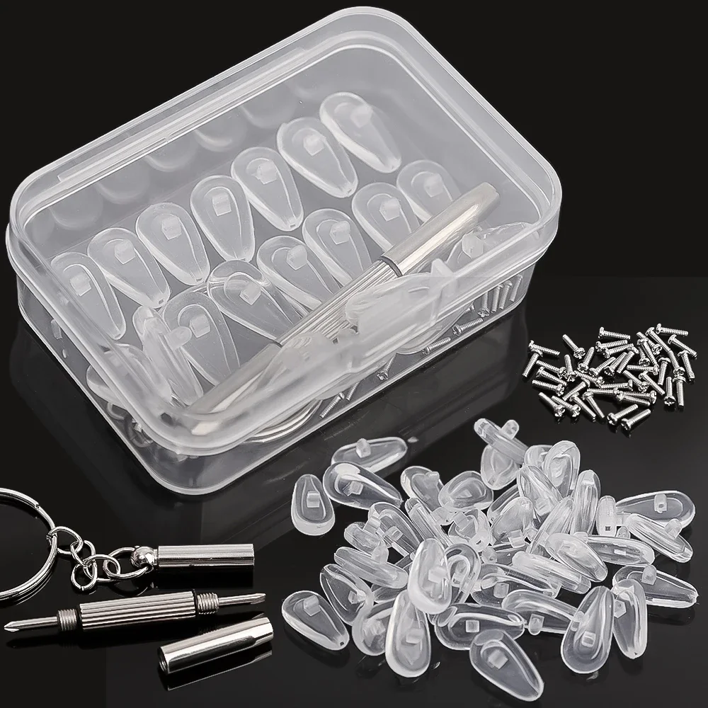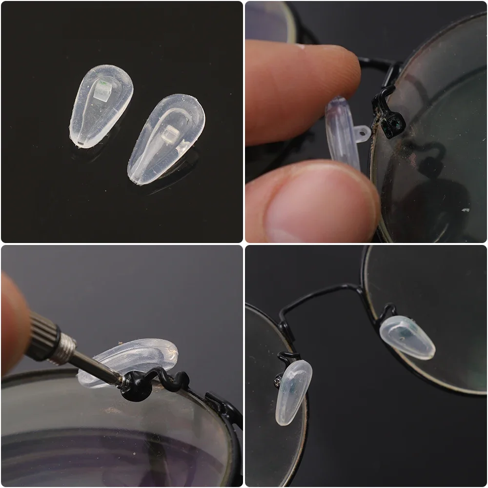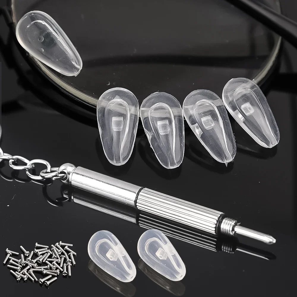 안경 코받침 (드라이버 포함) DIY 부드러운 실리콘 에어 챔버 안경 교체 수리 도구 미끄럼 방지 코받침 나사