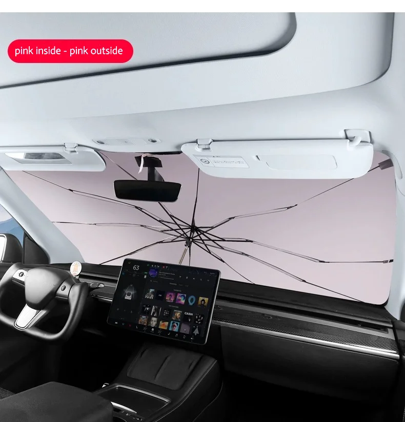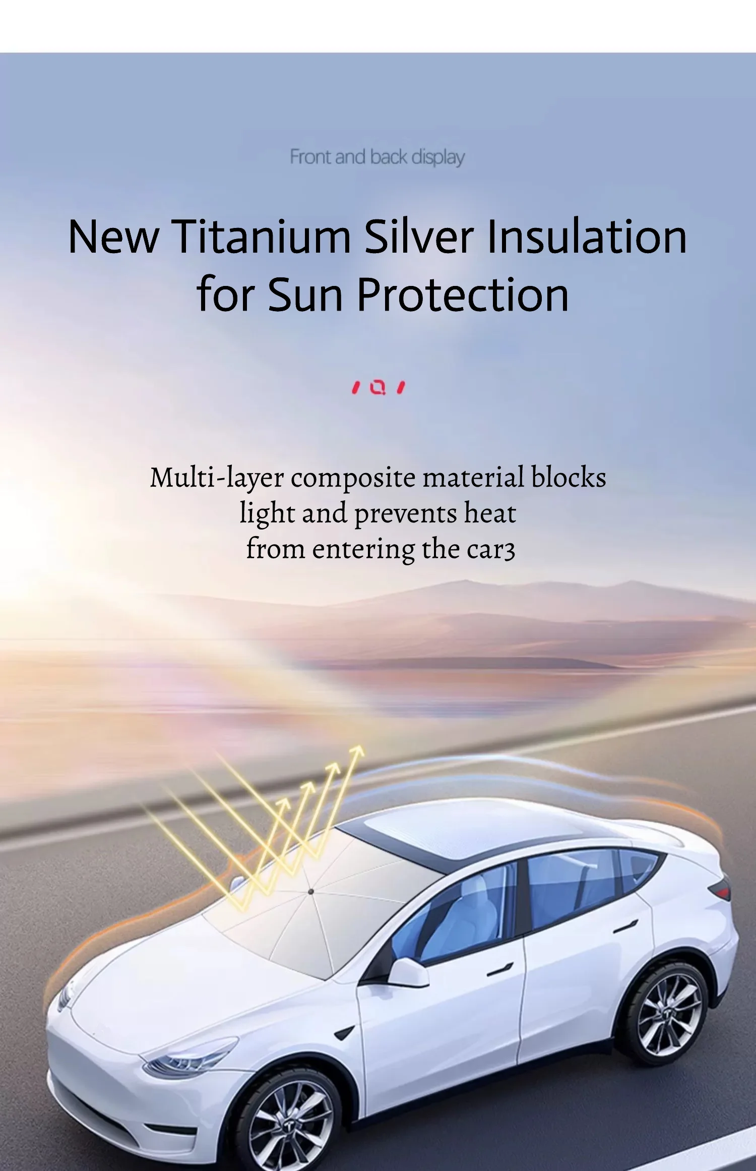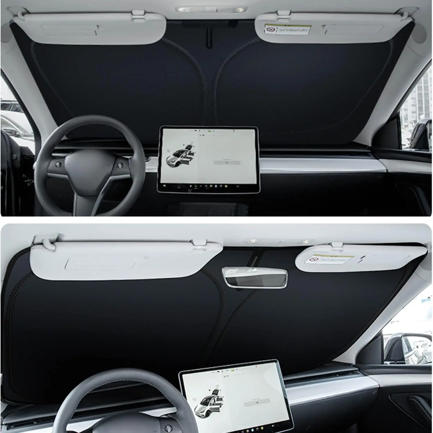 Tesla Model Y 3 자동차 앞 유리 차양 우산 360° 접이식 우산 자동차 차양 UV 전면 창 단열 커버