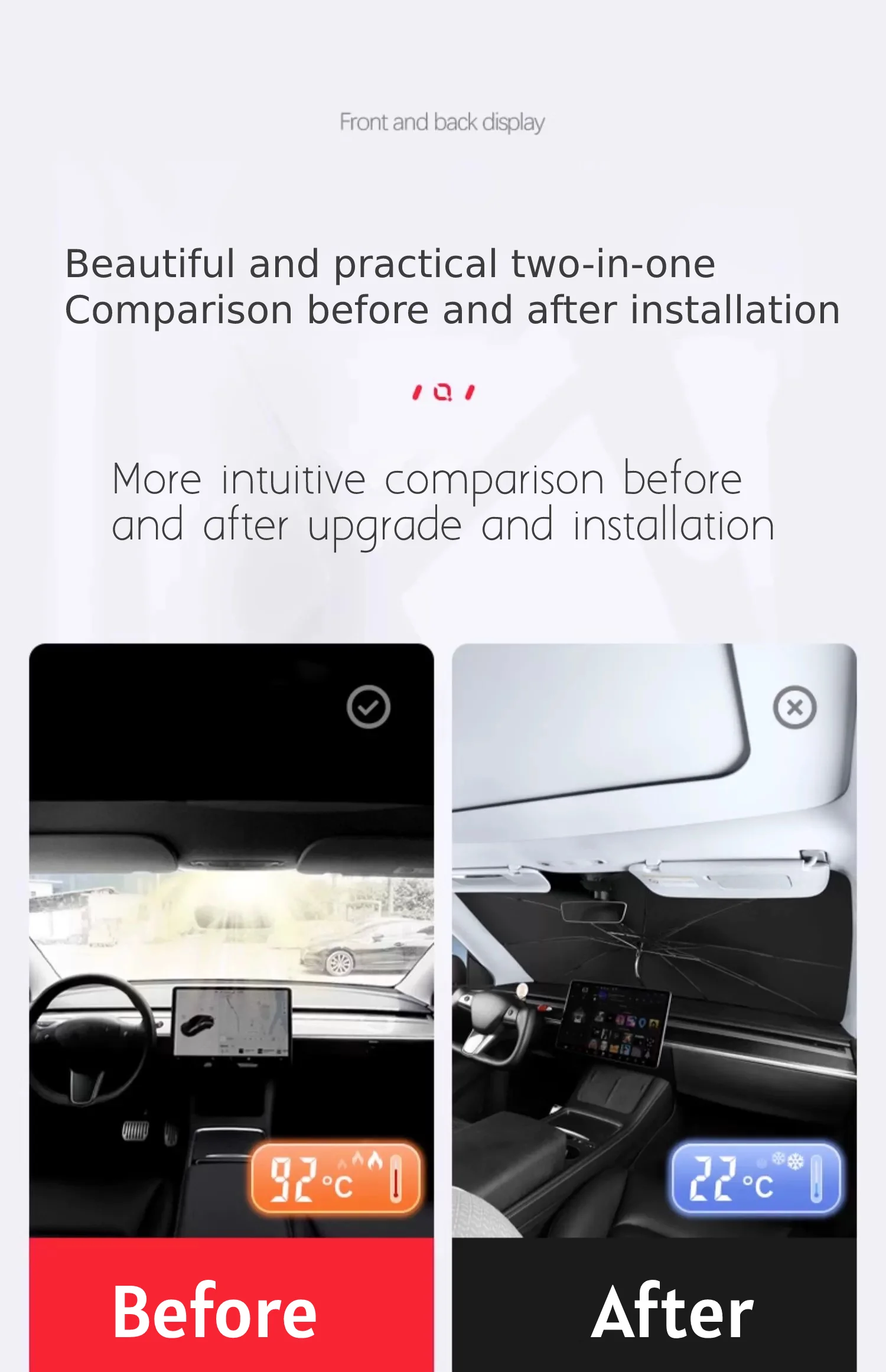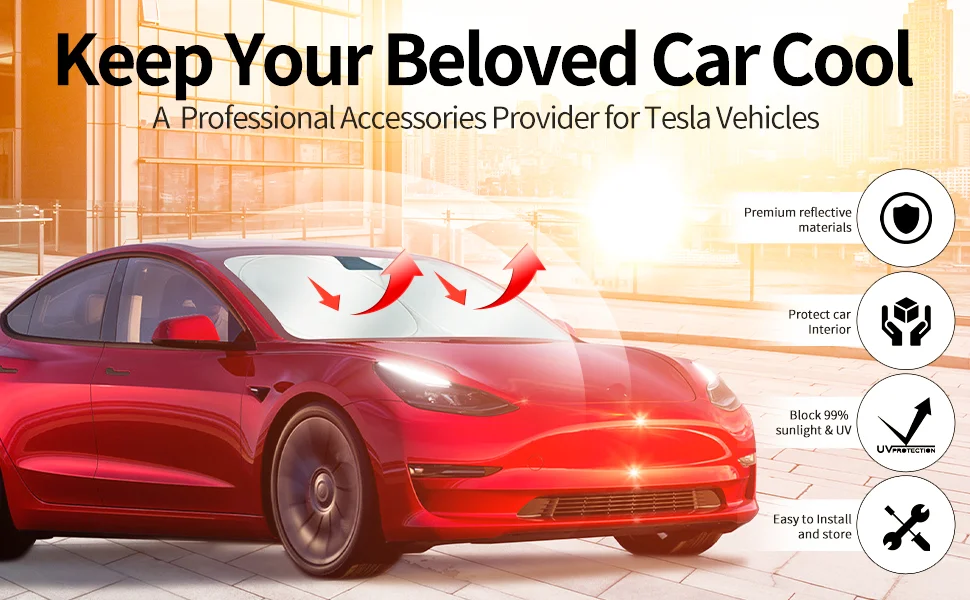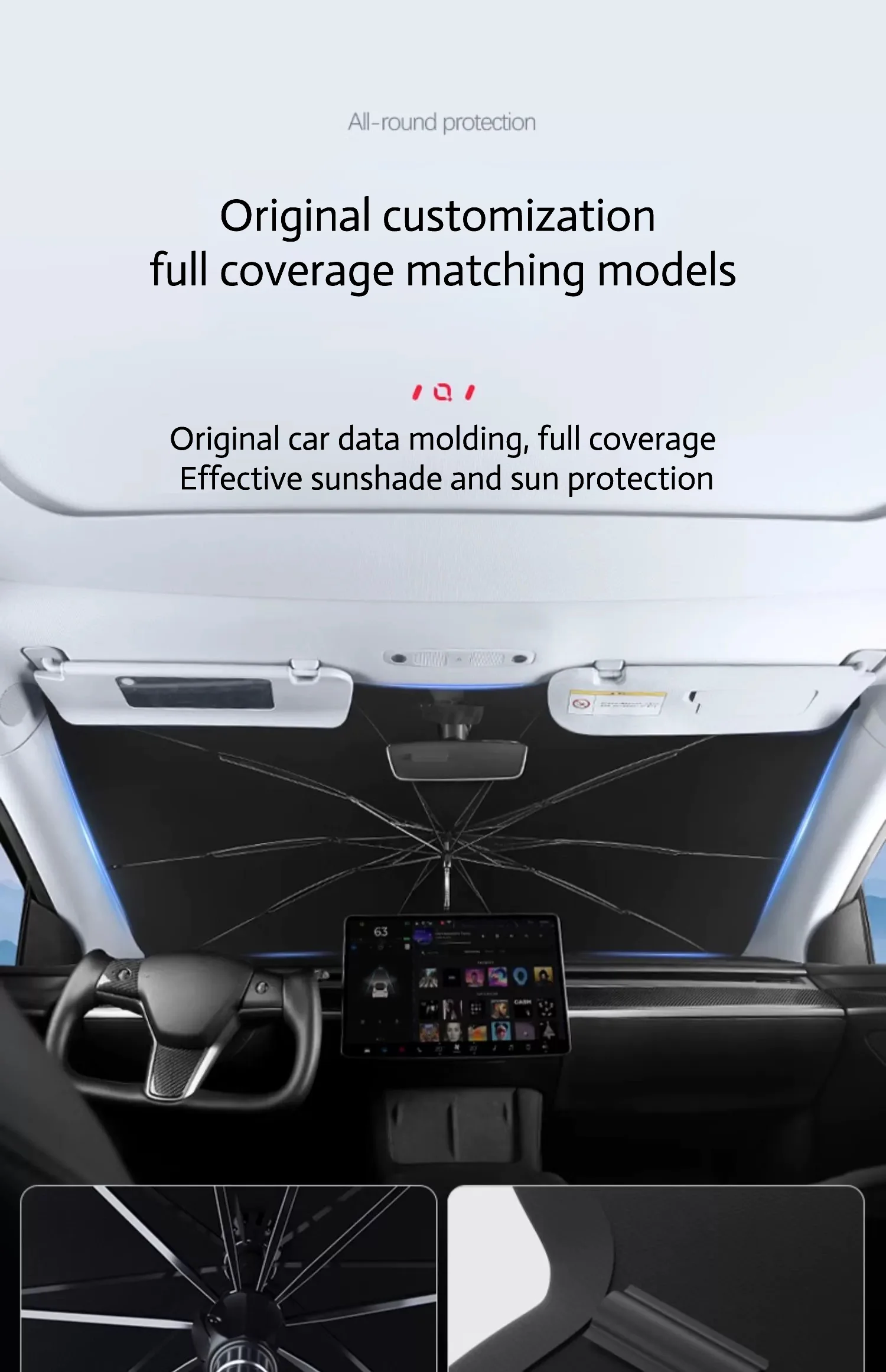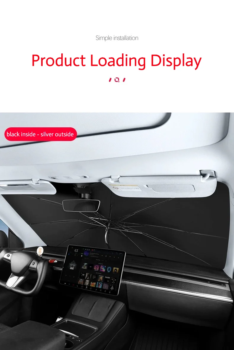 Tesla Model Y 3 자동차 앞 유리 차양 우산 360° 접이식 우산 자동차 차양 UV 전면 창 단열 커버