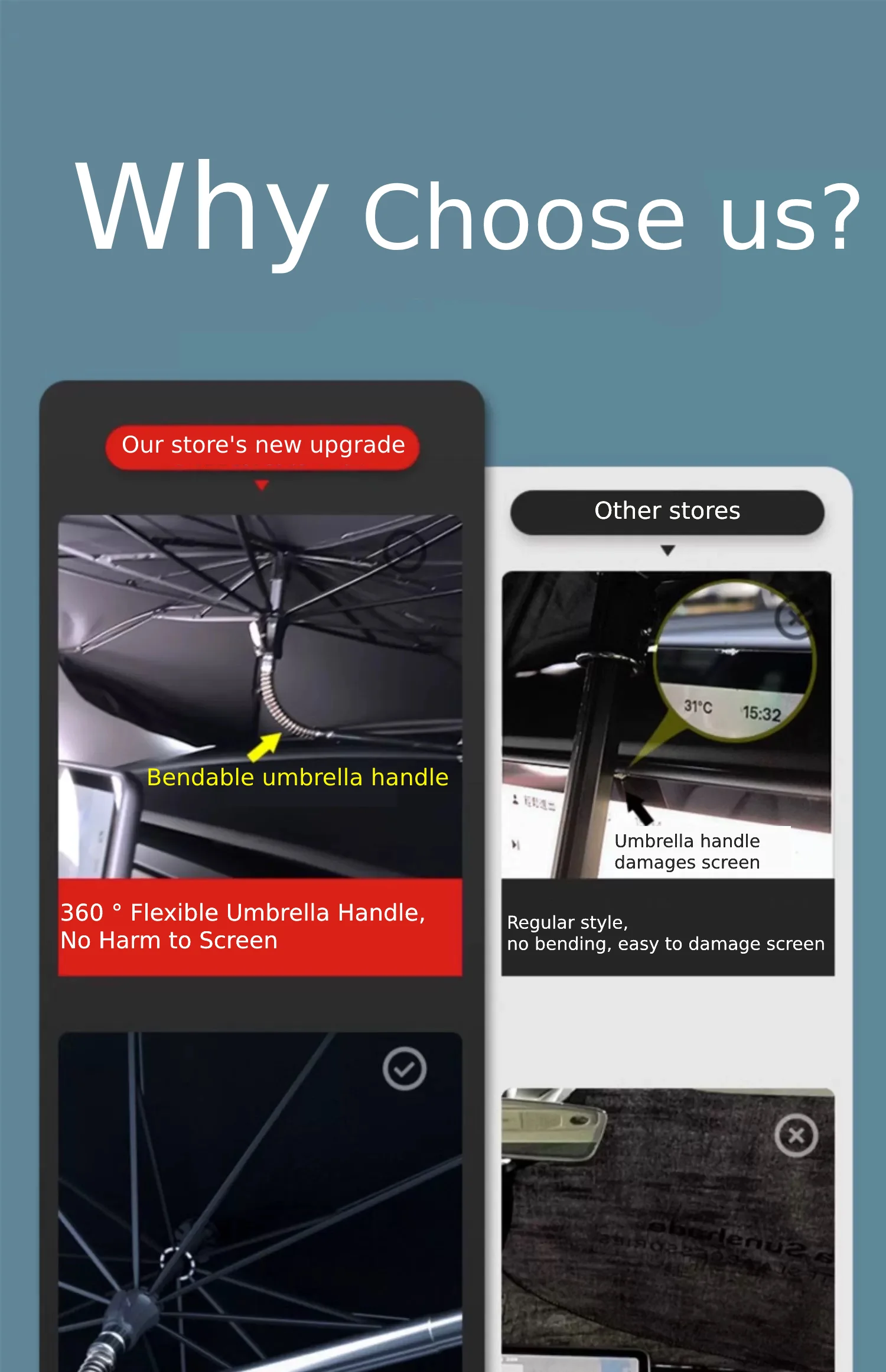 【내구성과 신뢰성】: 당사의 자동차 앞유리 차양은 단열재 및 UV 차단 강철을 포함한 고급 소재로 제작되어 장기간 사용에도 신뢰할 수 있습니다.10개의 강력한 뼈대와 내구성을 보장하는 안정적인 지지 시스템을 갖추고 있습니다.