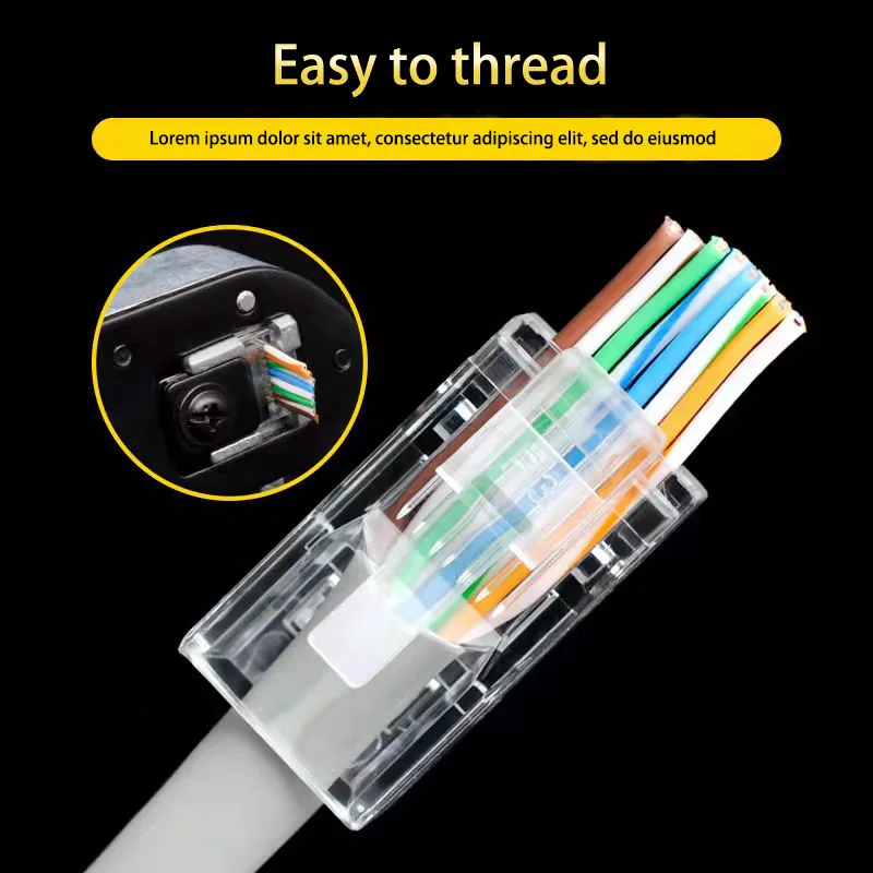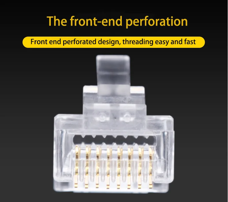 100개/로트 RJ45 CAT6 CAT5e 패스스루 커넥터 크리스탈 엔드 금도금 8P8C 크림프 UTP 표준 이더넷 네트워크 모듈러 플러그