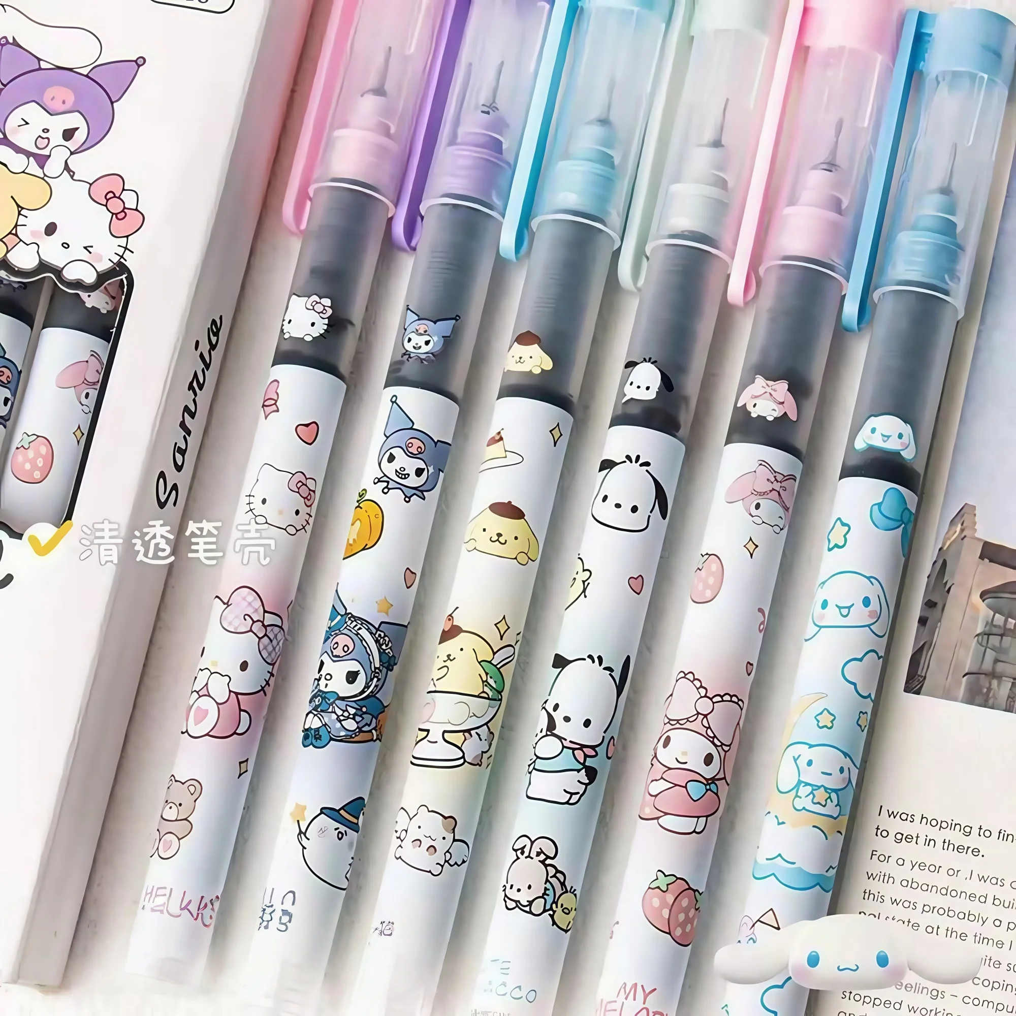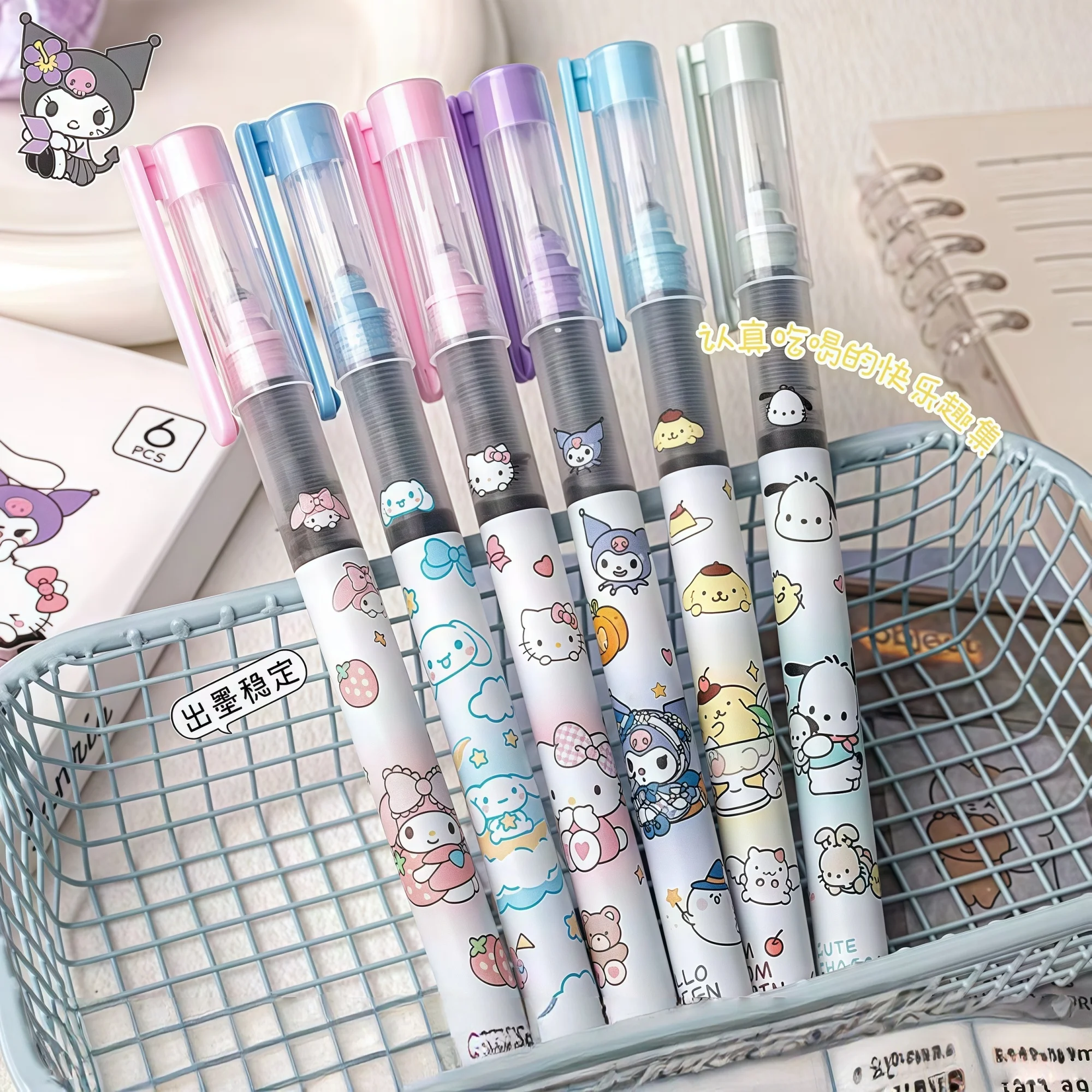 6 개/대 Sanrio 고품질 바늘 유형 젤 펜 스트레이트 액체 볼펜 Kawaii 편지지 학교 사무 용품 쓰기