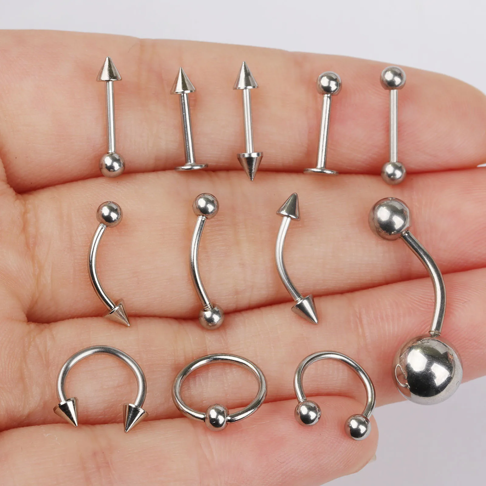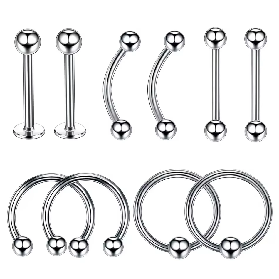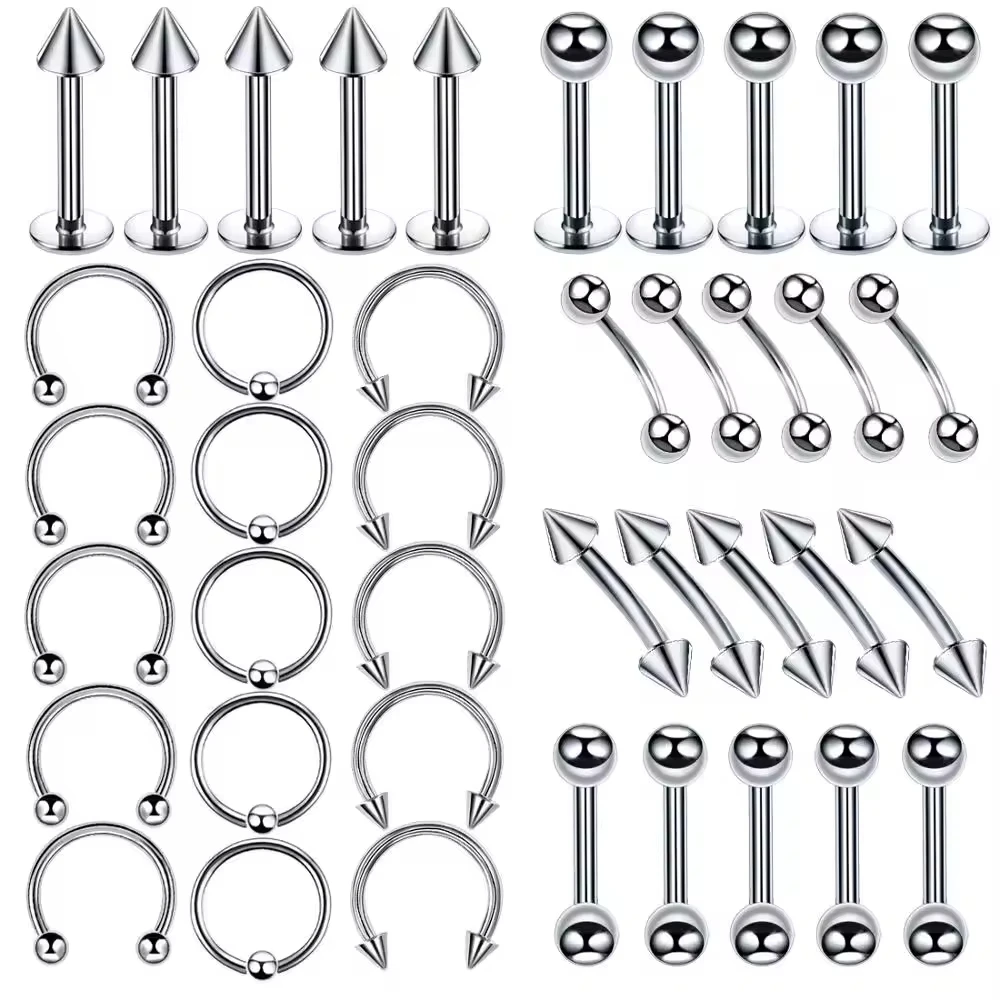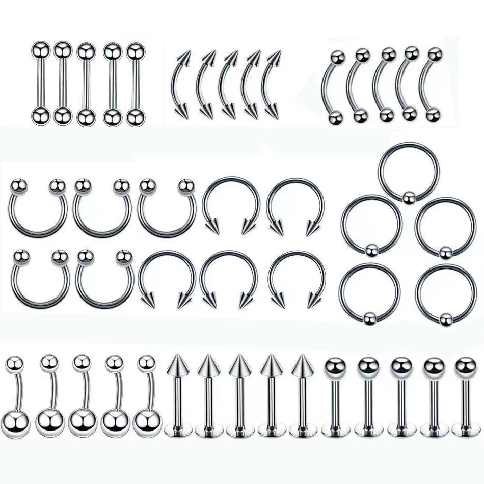 5/10/40/60개 바디 피어싱 주얼리 스테인리스 스틸 코 귀 배꼽 입술 혀 피어싱 링 캡티브 비드 눈썹 바 피어싱 세트 주얼리
