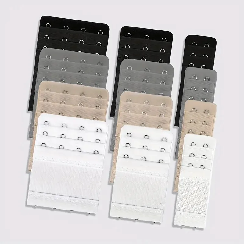 조절 가능한 브라 익스텐더 12개 - 2/3/4 후크 디자인, 부드러운 스트레치 원단, 브라, 탱크탑, 수영복에 적합 - 멀티컬러(블랙/그레이/베이지/화이트) - 오래 지속되는 지지력과 핏을 위한 여성용 속옷 연장 스트랩