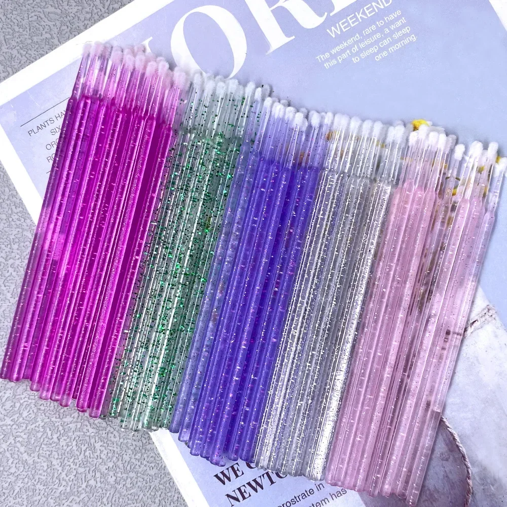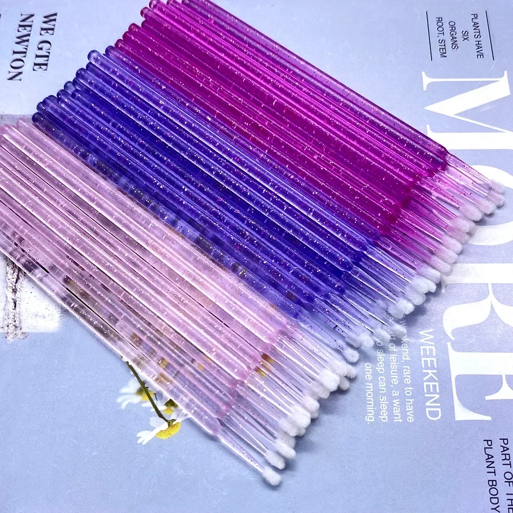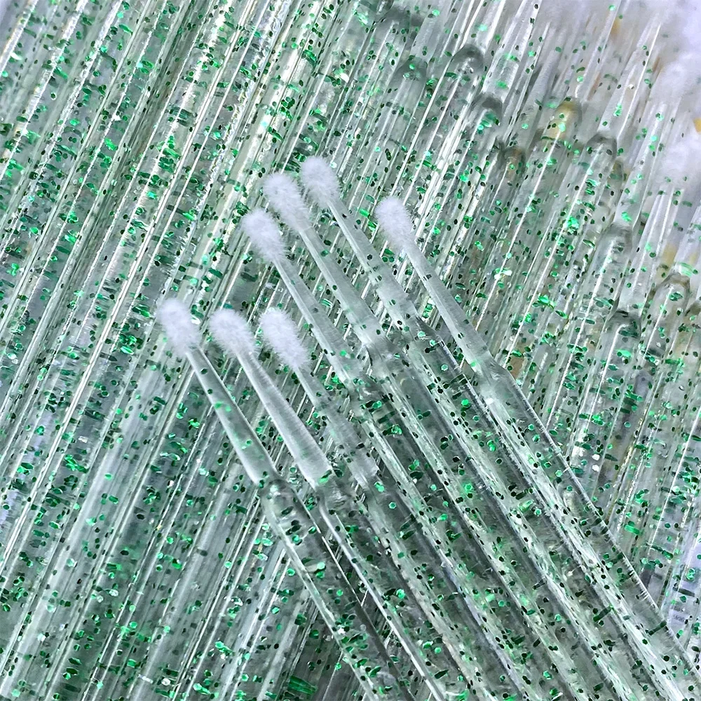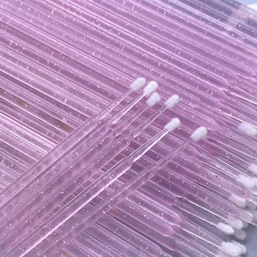 반짝이가 있는 마이크로 브러시는 일반 마이크로 브러시보다 큰 팁을 가지고 있습니다.