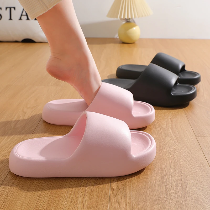 유니섹스 미끄럼 방지 욕실용 홈 슬리퍼 부드러운 밑창 EVA 쿠션 슬라이드 여름 플랫 비치 샌들 여성용 두꺼운 플랫폼 클라우드 슬리퍼