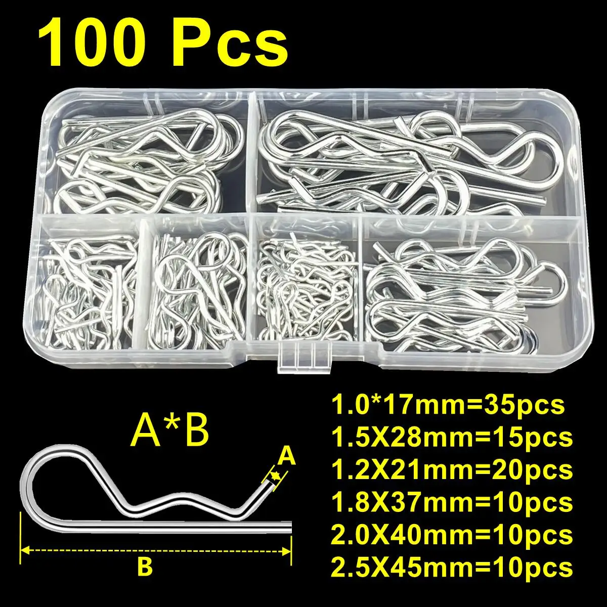 100/125Pcs R형 코터 핀 세트 KIt 웨이브 래치 볼트 잠금 분할 클립 히치 핀