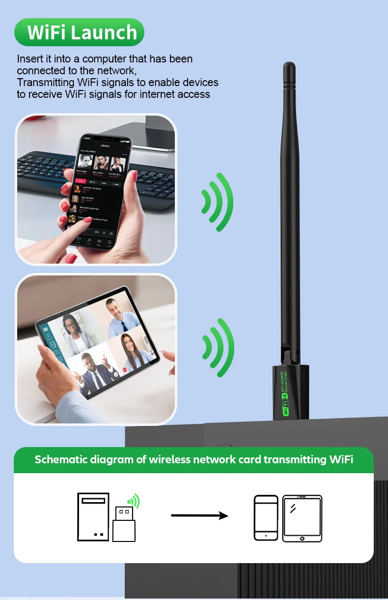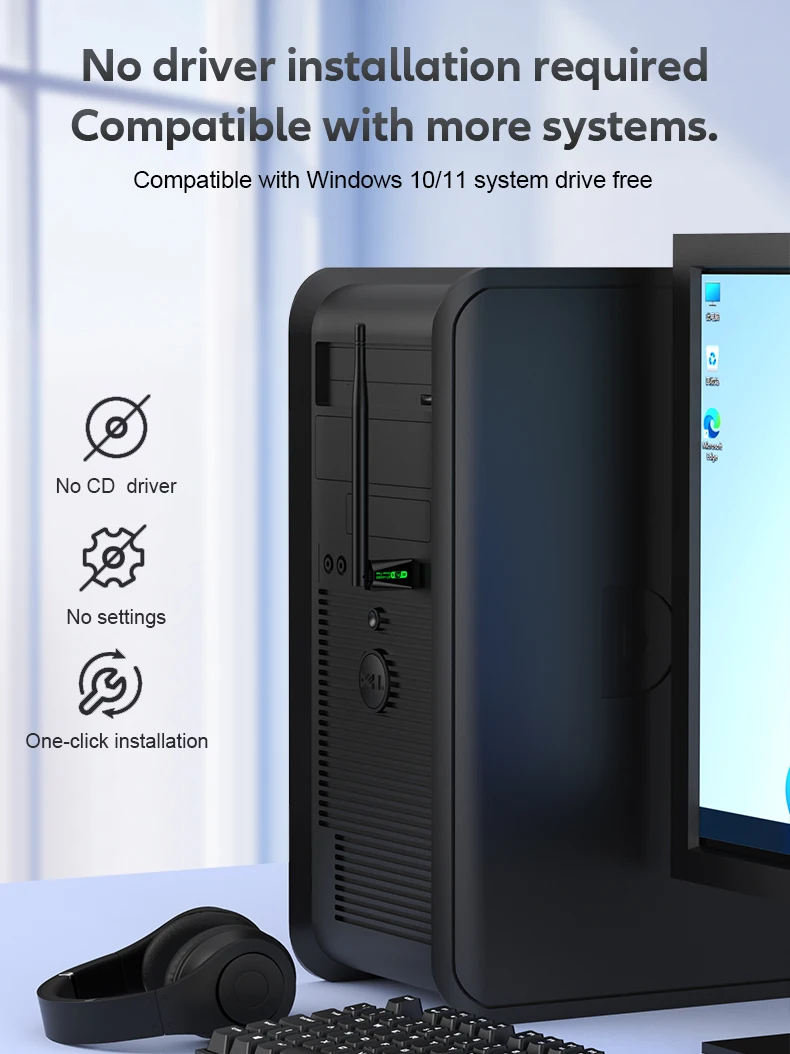 【★드라이버 필요 없음】내장형 무선 네트워크 카드 드라이버, CD-ROM, 광학 드라이브가 필요하지 않으며, 컴퓨터에 연결하면 드라이버 설치가 쉽게 가능하며, 편리하고 걱정 없이 한 번에 완성됩니다.