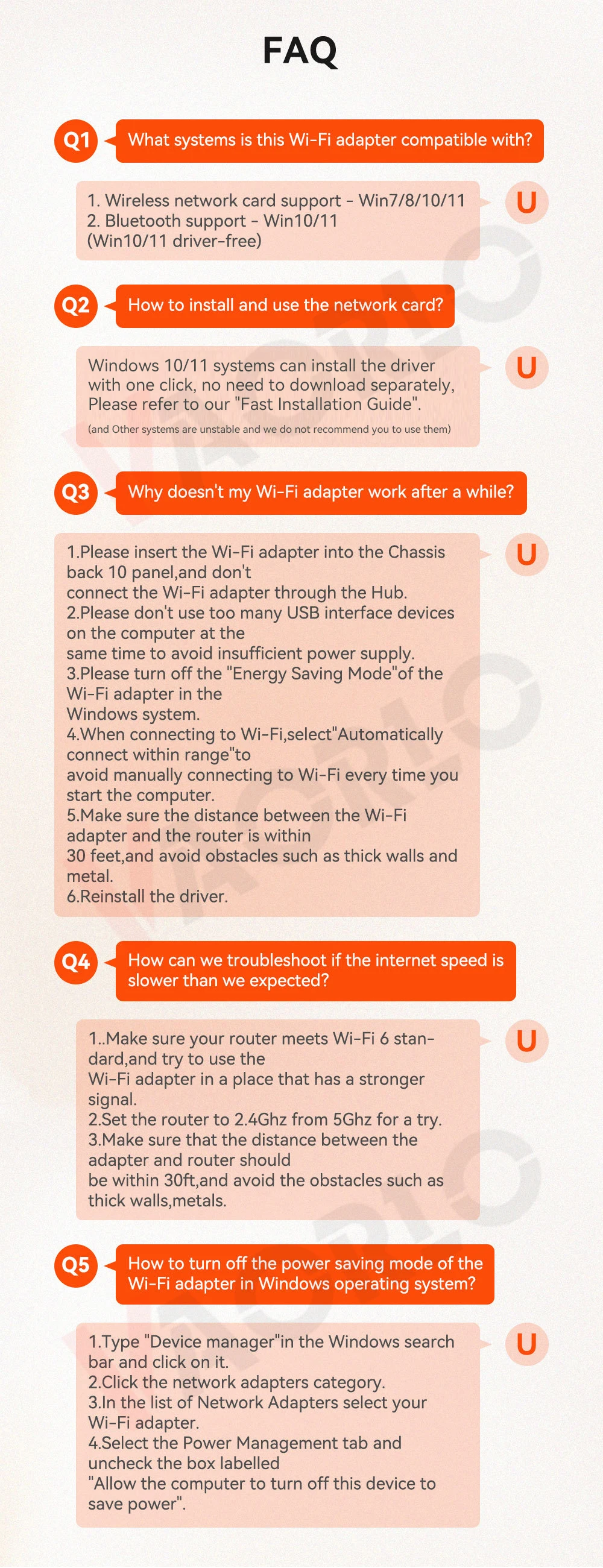 A2: Windows 10/11 systems can install the driver with one click, no need to download separately, Please refer to our "Fast Installation Guide".(and Other systems are unstable and we do not recommend you to use them)