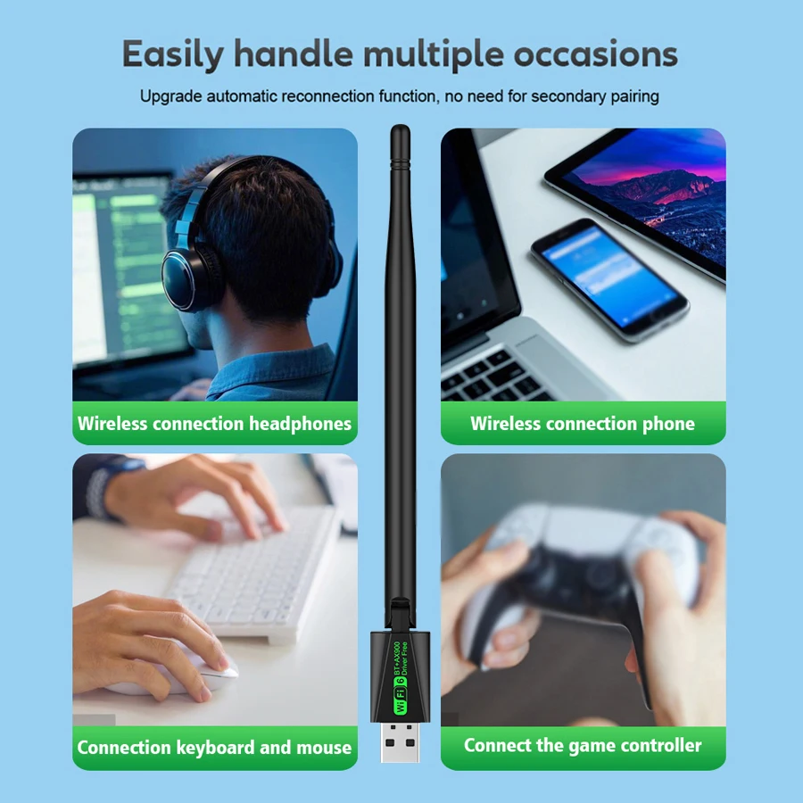 【★고속 WiFi 연결】vaorlo의 900Mbps USB WiFi 블루투스 어댑터로 깨지지 않는 인터넷 연결을 경험하고, 최적의 온라인 경험을 위한 고속 데이터 전송을 보장합니다.