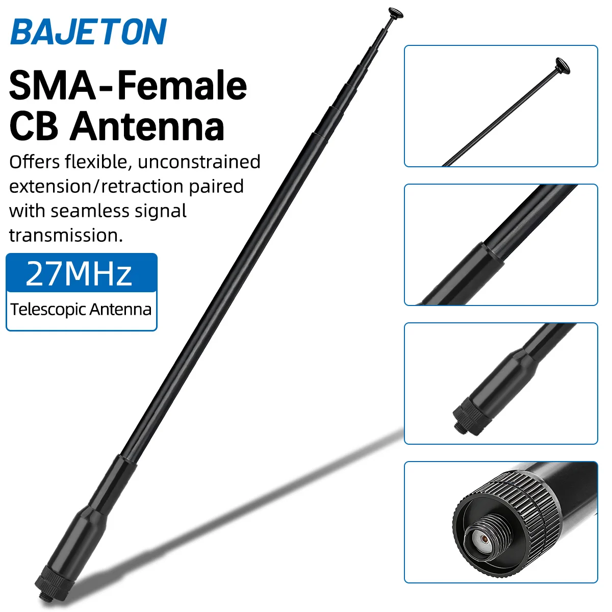 Iradio UV-88 UV-98 PLUS UV-4R R5000 R6000, BAJETON BJ7700 BJ8000 BJ8200, Radtel RT-860 RT-880 Qquansheng TK11(5) TK11(8)과 호환됩니다. Cobra Midland Uniden과 같은 대부분의 휴대용 CB 라디오 또는 이 안테나에 적합한 기타 27MHz 라디오와 호환되어 CB 라디오의 수신 성능을 향상시킬 수 있습니다.
