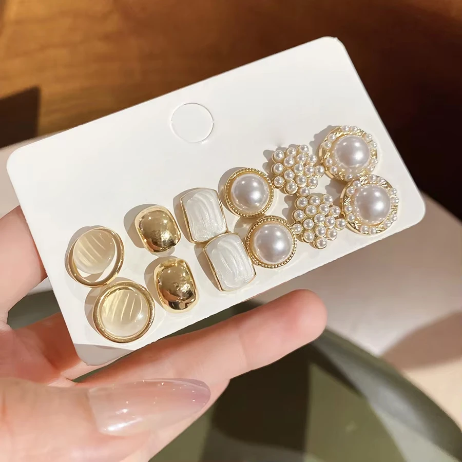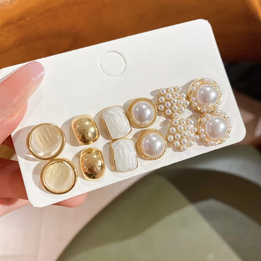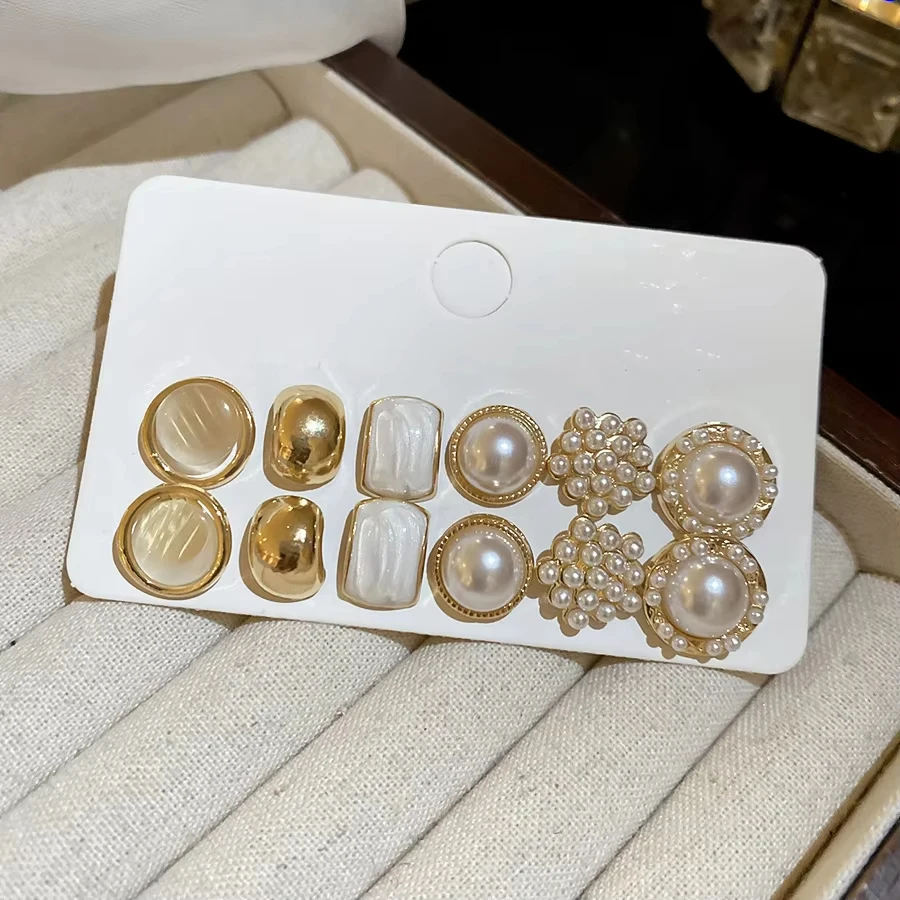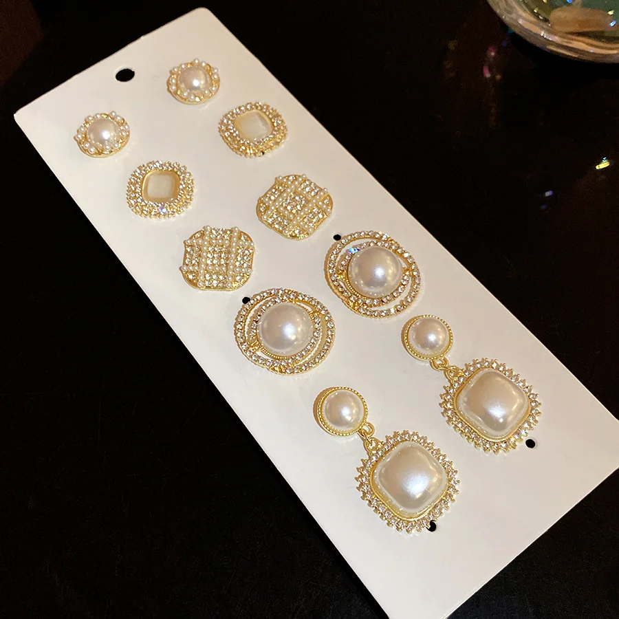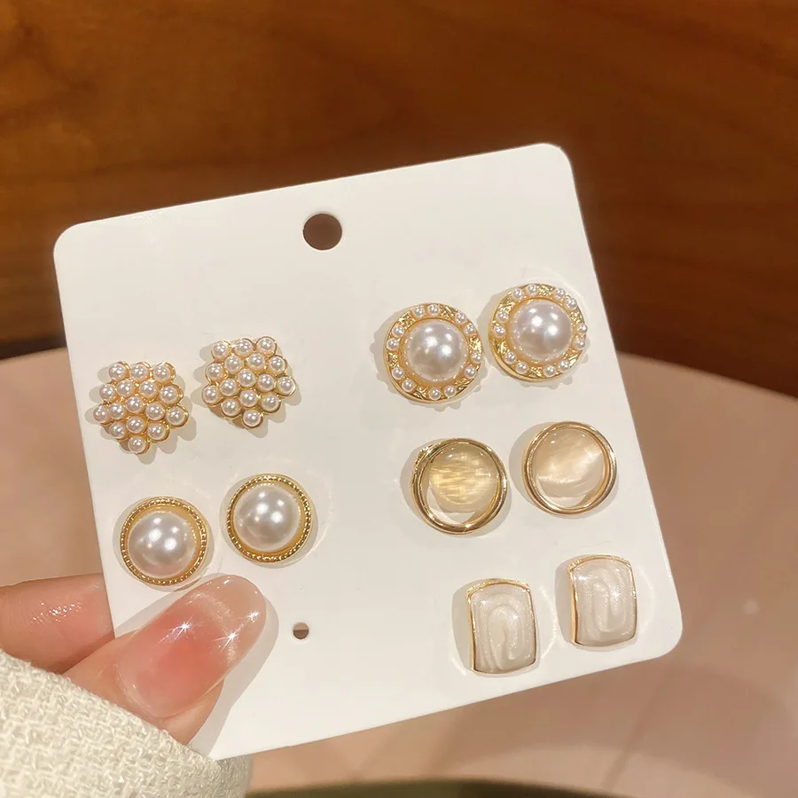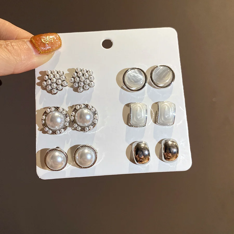6/10/12개 시뮬레이션 진주 라운드 스퀘어 스터드 귀걸이 여성용 데일리 주얼리 세트