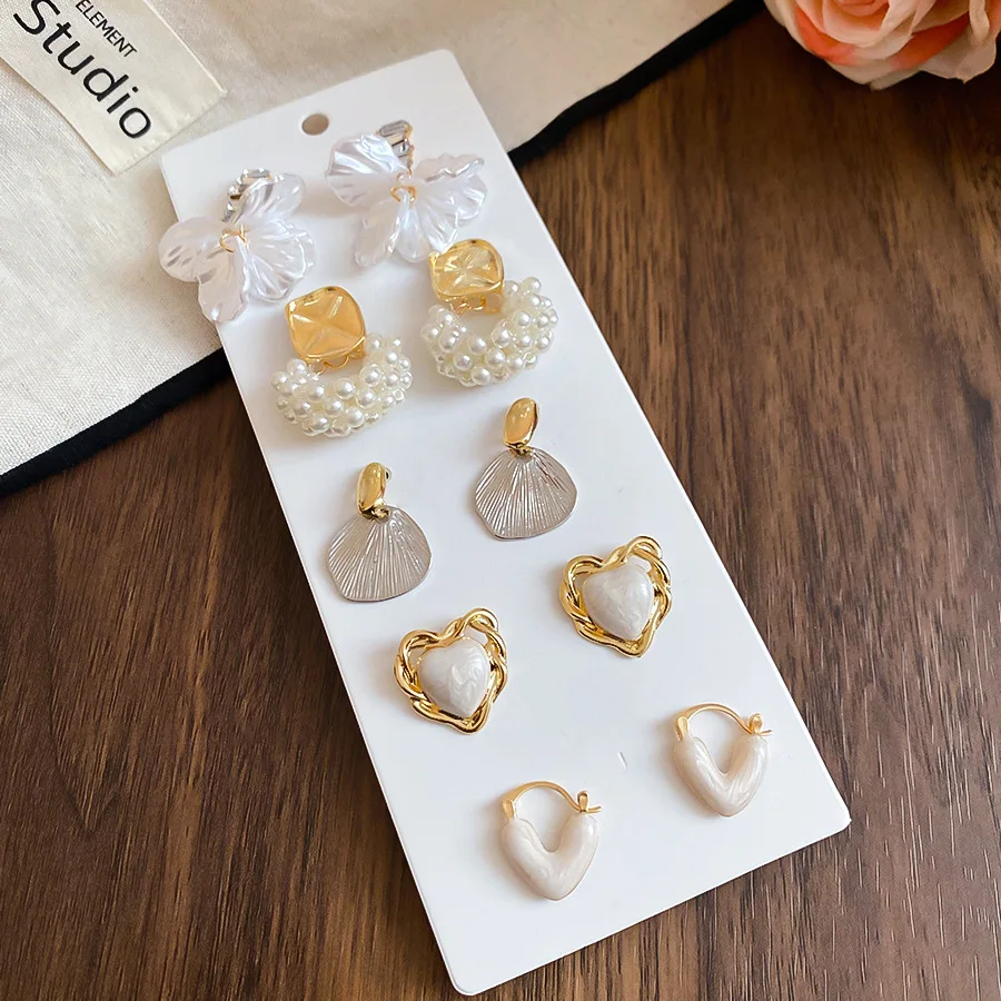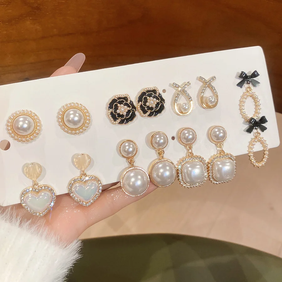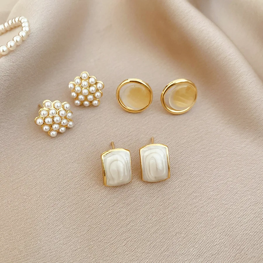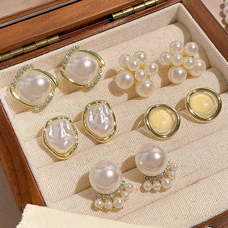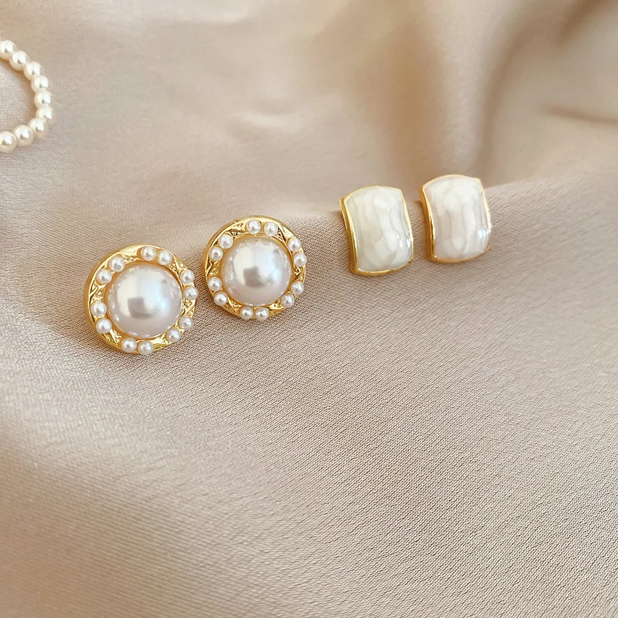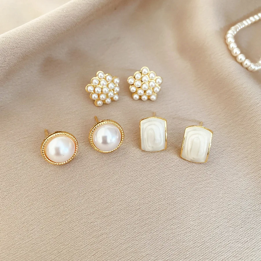 6/10/12개 시뮬레이션 진주 라운드 스퀘어 스터드 귀걸이 여성용 데일리 주얼리 세트